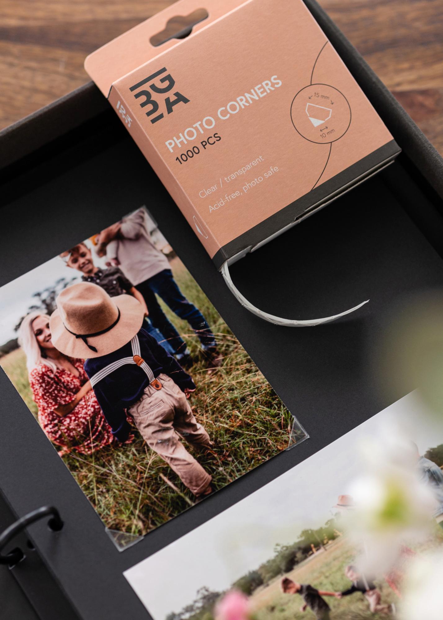 Fotohoeken zijn perfect voor bijvoorbeeld het monteren van foto's in een fotoalbum waarbij je geen gebruik van lijm wilt maken. Omdat je de fotohoeken aan de hoeken van de afbeelding bevestigt, bescherm je deze ook tegen beschadigen na verloop van tijd. Het resultaat is een stijlvolle, soepele en betrouwbare montage van je afbeeldingen.
