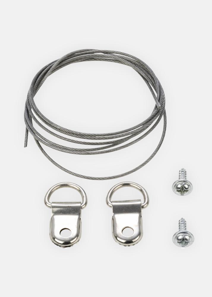 Houd er rekening mee dat deze ophanging niet op alle lijsten past. We raden af om staaldraden te gebruiken voor de lijsten die we verkopen met voorgemonteerde beugels hebben die bedoeld zijn voor ophanging.