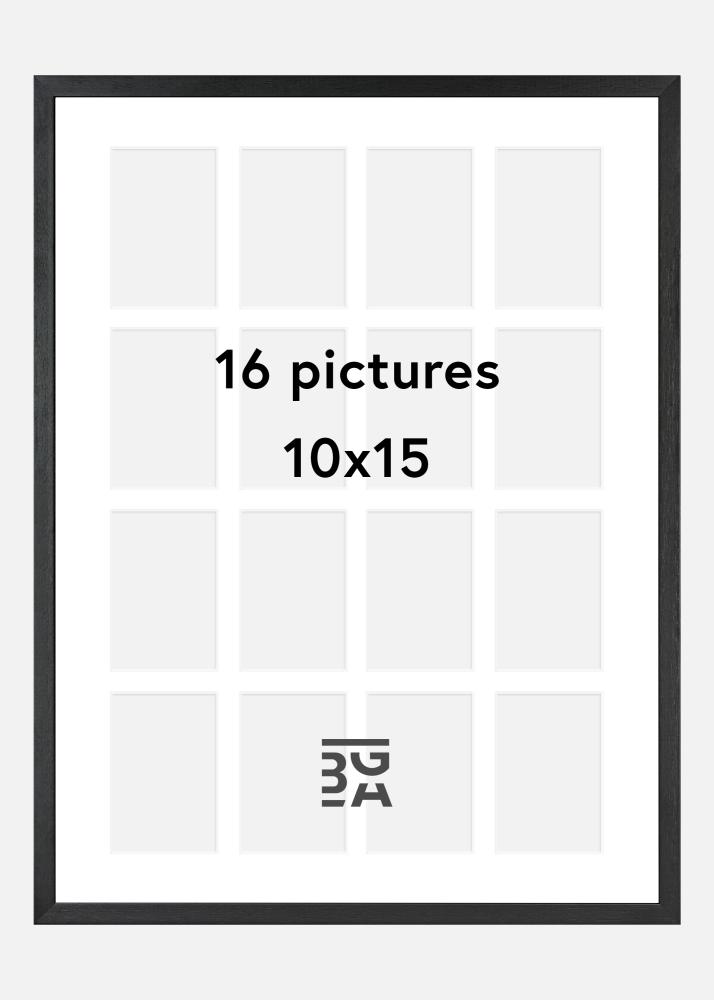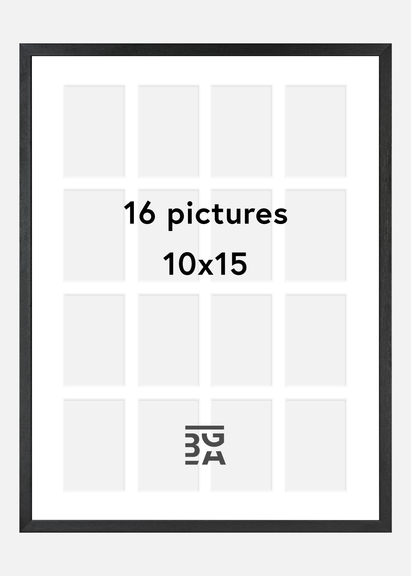 Black Wood met een passe-partout voor 16 foto's is zeer geschikt voor foto's van je kinderen, huisdieren of misschien van de laatste vakantie? De zwarte, stijlvolle lijst, gecombineerd met het witte passe-partout haalt de kleuren in de foto's extra naar boven, maar past ook weer heel goed bij zwart-witfoto's.