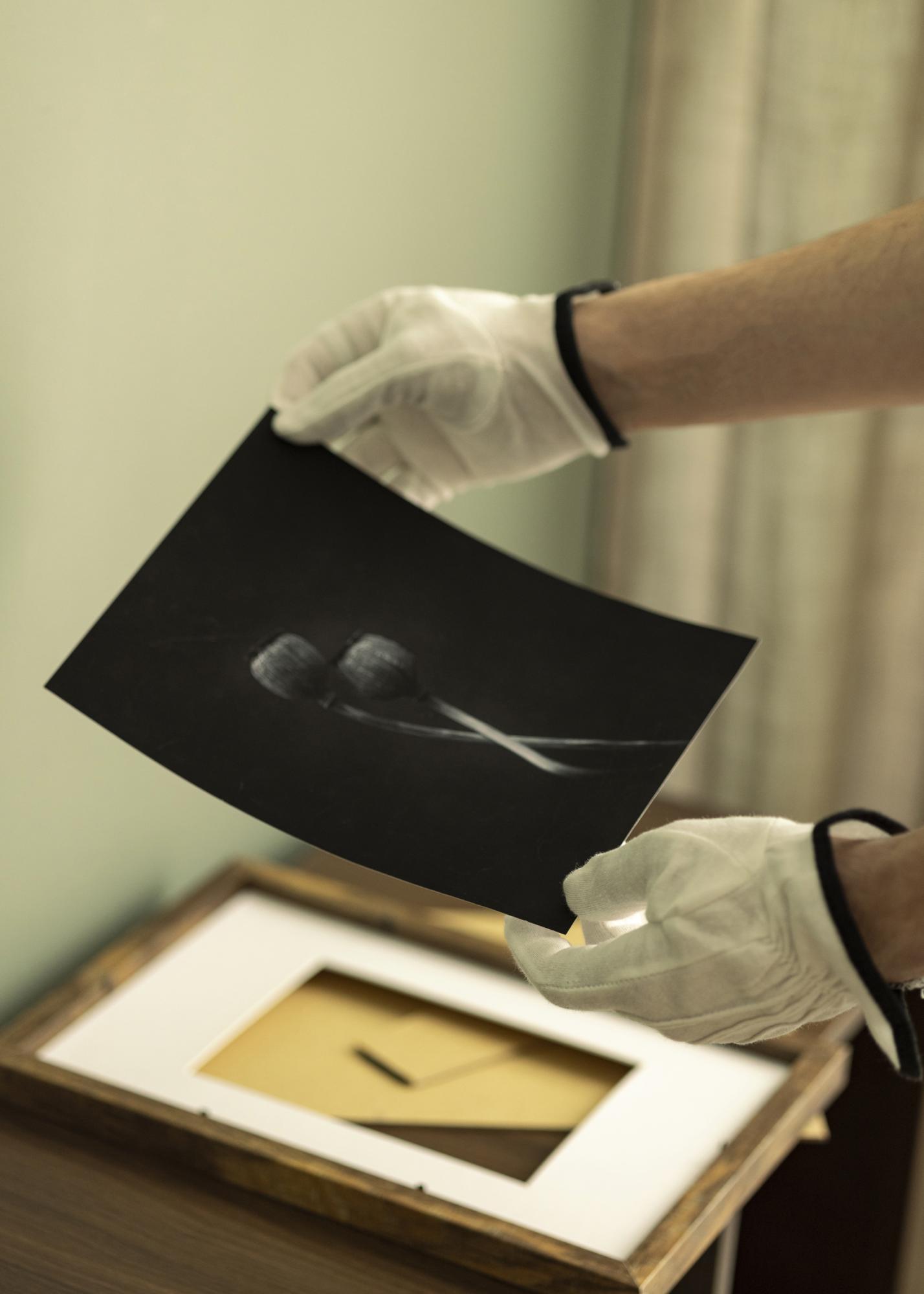Daarom raden wij onze dunne, katoenen handschoenen aan die in verschillende maten verkrijgbaar zijn. Daarmee wordt het inlijsten van foto's een kinderspel!