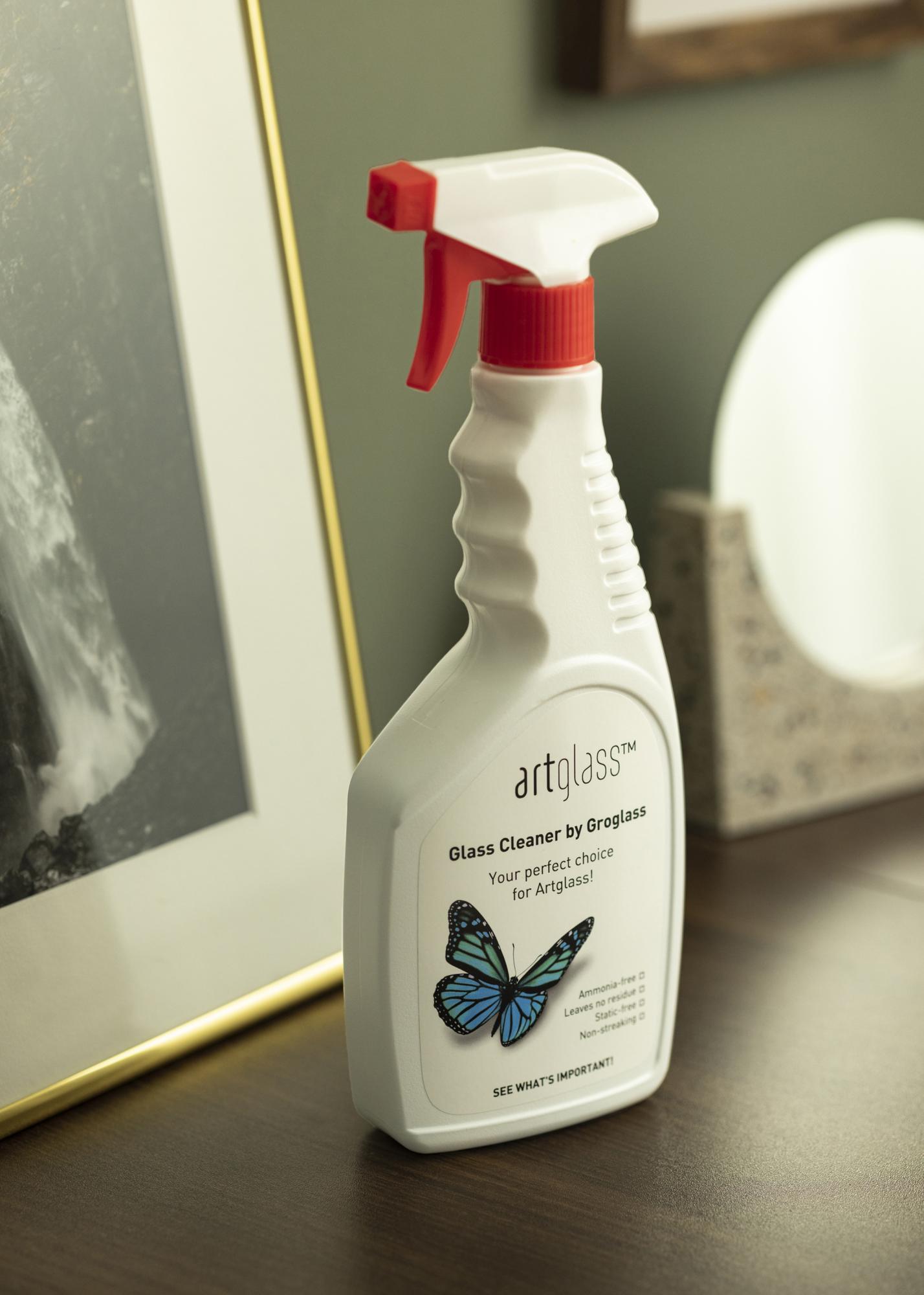 Reinig uw schilderijen en spiegels als een professional met Groglass glasreiniger! Deze ammoniakvrije glasreiniger wordt gebruikt door professionele lijstenmakers en verwijdert gemakkelijk en effectief vuil, vlekken of vingerafdrukken van alle soorten glas. De glasreiniger is vrij van zeep, schuimt niet en laat geen sporen of strepen achter. Dit maakt de glasreiniger bijzonder goed voor het reinigen van ontspiegeld/anti-reflexglas.