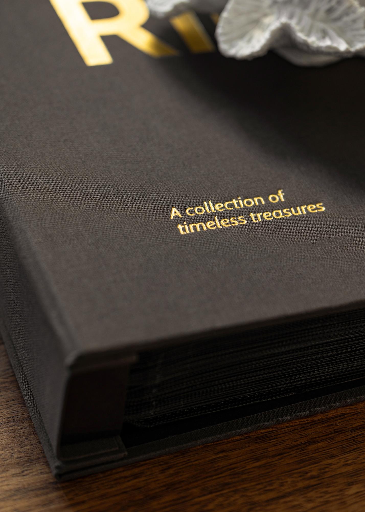 Bewaar je mooiste foto's in stijl met dit textiel beklede album. Het fotoalbum biedt ruimte aan 300 foto's van 10x15 cm, in zowel portret- als landschapsformaat, die in handige fotovakjes worden geplaatst. Het stijlvolle ontwerp, met zwarte tint en brede rug, geeft het album een luxe uitstraling die in elk huis past. Voor extra finesse heeft de voorkant en rug van het album een goudkleurige opdruk met de tekst 'MEMORIES', gevolgd door de ondertitel 'A collection of timeless treasures' die in de linkerhoek is gedrukt.
