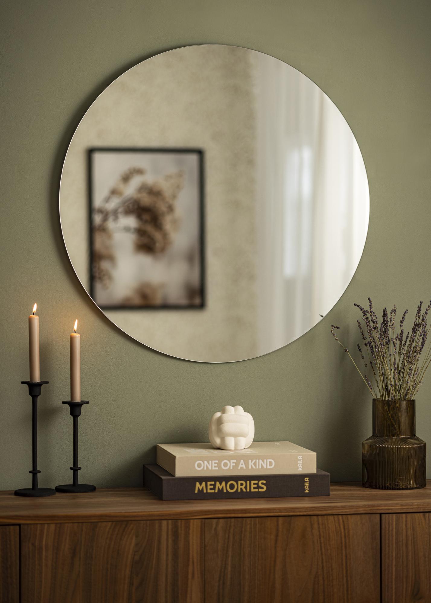 75 cm Ø ronde spiegel die deel uitmaakt van een serie ronde spiegels van KAILA. Verkrijgbaar in 13 maten zodat jij de perfecte maat vindt voor jouw kamer. De spiegel is extreem dun en stijlvol en past in alle soorten kamers en interieuren.