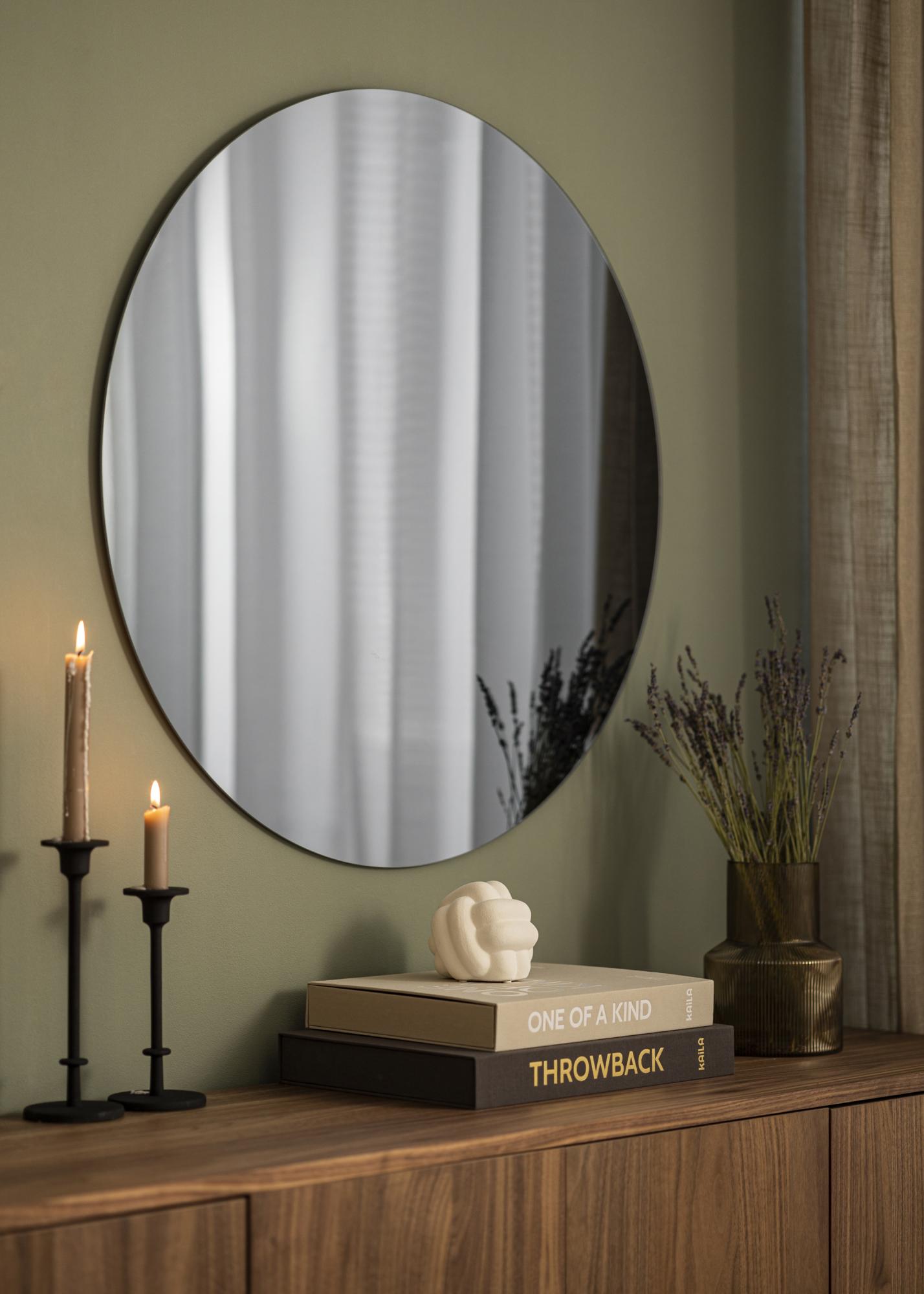 KAILA Ronde Spiegel Smoked Grey is verkrijgbaar in verschillende afmetingen, en deze variant heeft een afmeting van Ø 80 cm. Perfect als halspiegel, of als een stijlvol en praktisch interieurdetail in de woonkamer of slaapkamer.