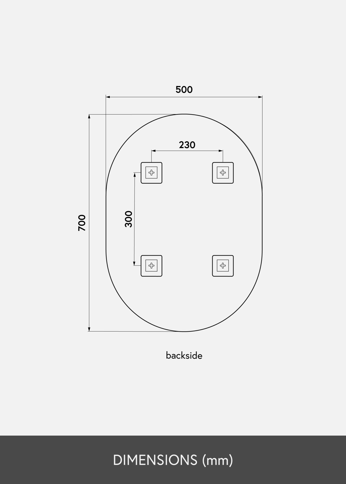 De ovale spiegel is in verschillende afmetingen verkrijgbaar. Deze variant betreft 50x70 cm.