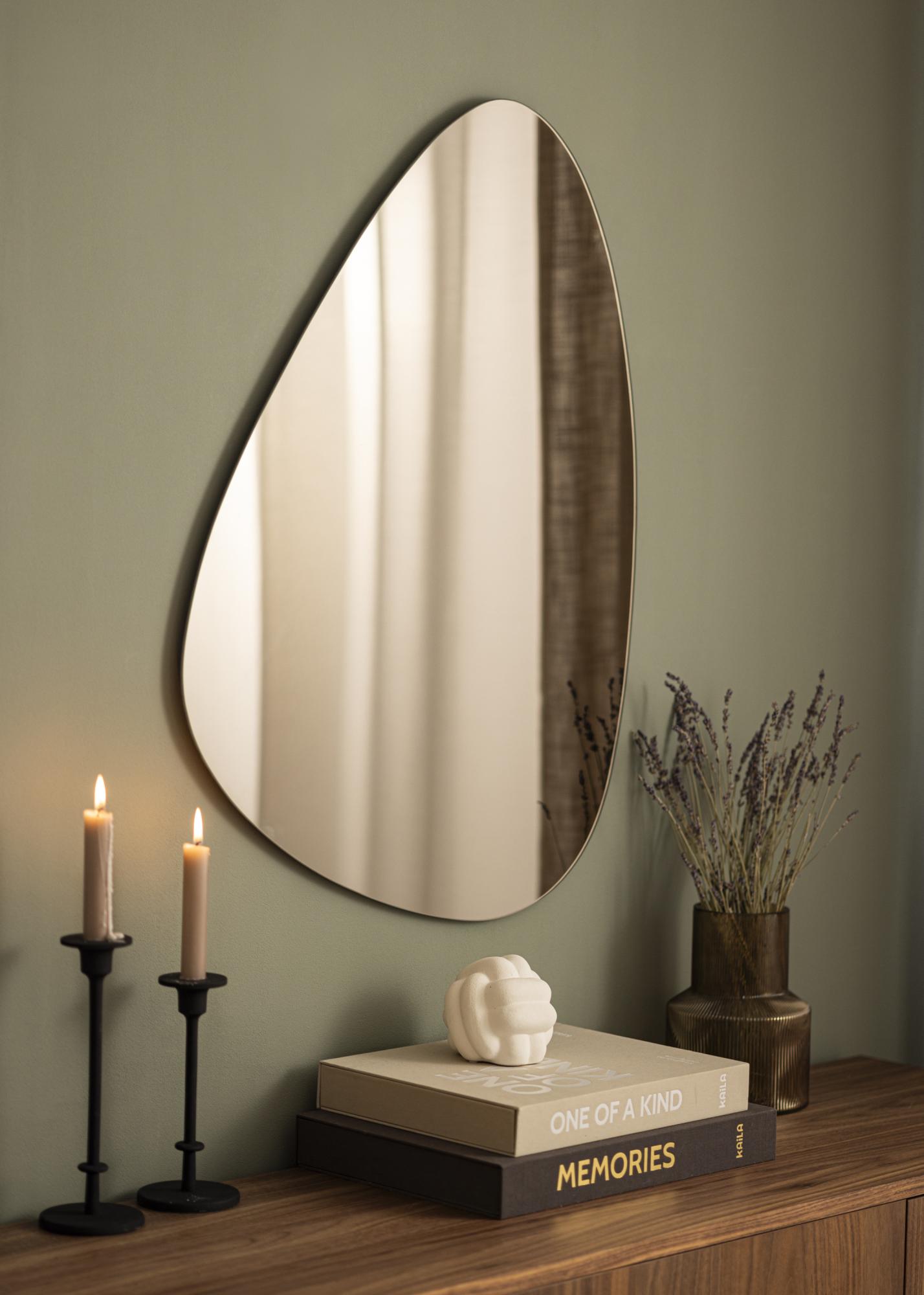 Deze asymmetrische spiegel wordt een heel stijlvol en trendy interieurdetail in je huis! Naast het interessante eivormige ontwerp is deze spiegel ook voorzien van elegant brons getint spiegelglas dat de moderne uitstraling versterkt en prachtig harmonieert met veel verschillende kleurenschema's. De zachte vorm in combinatie met het feit dat de spiegel erg dun is en geen frame heeft, geeft de spiegel een unieke elegante en smaakvolle uitstraling. Perfect als functionele en trendy wanddecoratie in de woonkamer, hal of slaapkamer.