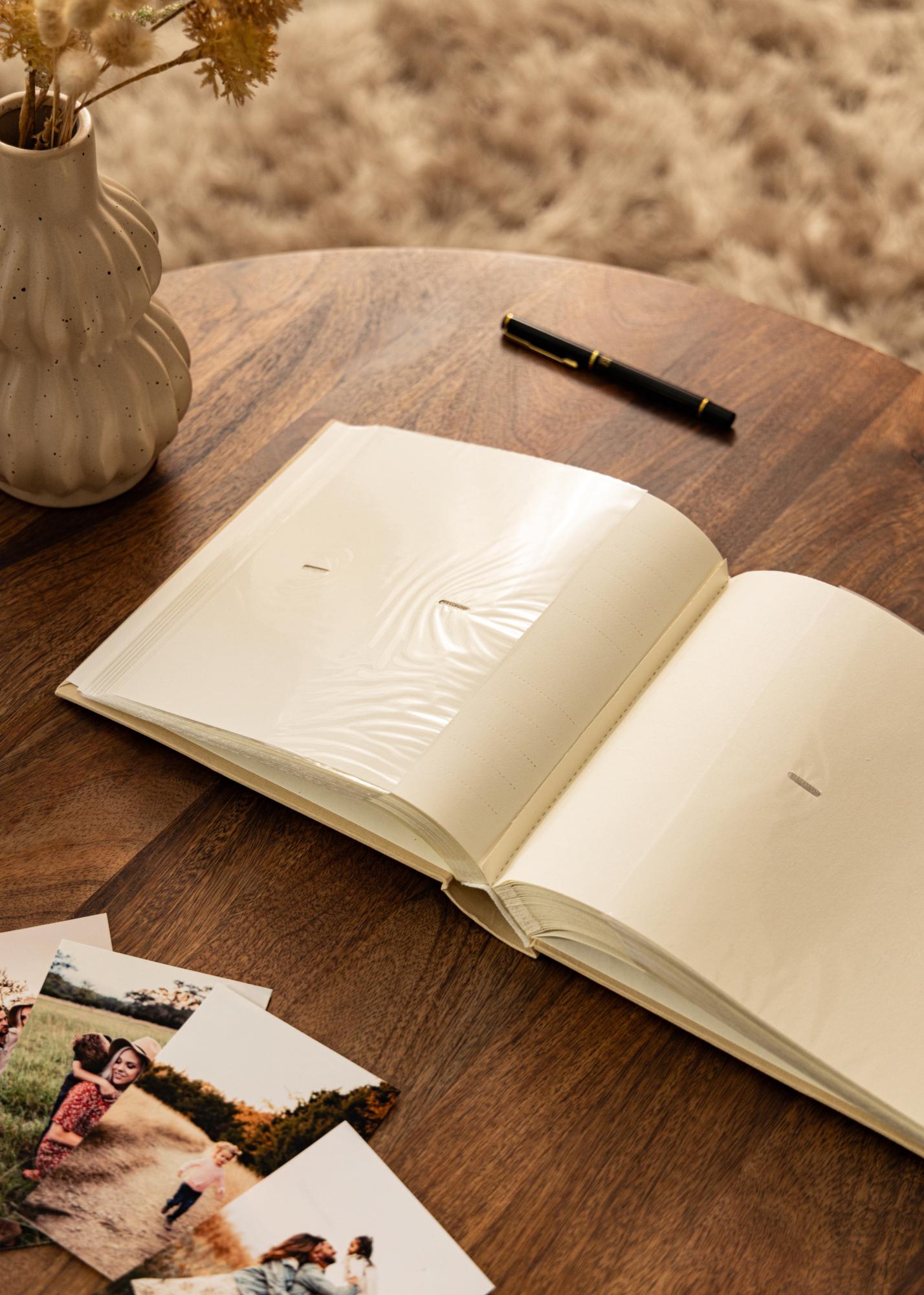 De kaften van het album zijn bekleed met een prachtige beige linnenstructuur die een tijdloze en verfijnde uitstraling geeft. Met fotovakken voor eenvoudige montage van de foto's, kun je snel en soepel het album vullen met je meest geliefde foto's. De beeldoriëntatie in het album is liggend, wat zorgt voor een harmonieuze weergave van je foto's.