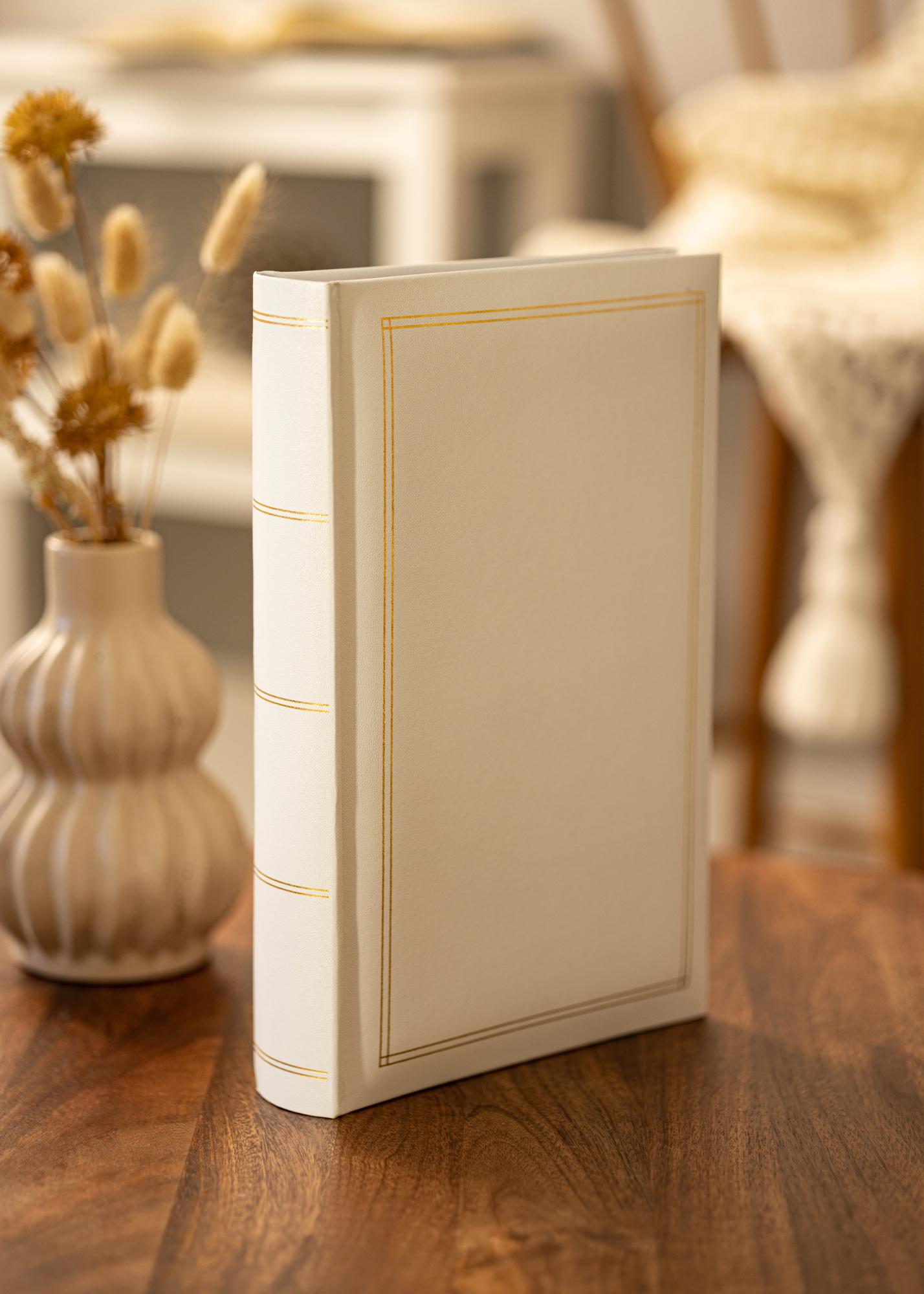 Nodig familie en vrienden uit voor een gezellig moment om samen oude herinneringen op te halen. In dit stijlvolle fotoalbum heb je ruimte voor wel 300 foto's van 10x15 cm. Aangezien je voor de foto's insteekhoesjes kunt gebruiken gaat het plaatsen makkelijk en snel. Bij ieder hoesje is er ook nog gelinieerde ruimte voor een bijschrift. De kaft is smaakvol wit met dubbele gouden lijnen langs de randen en op de rug, voor een extra luxe gevoel. Zet een borrelhapje klaar, een lekker muziekje aan en begin jullie nostalgische reis terug in de tijd.