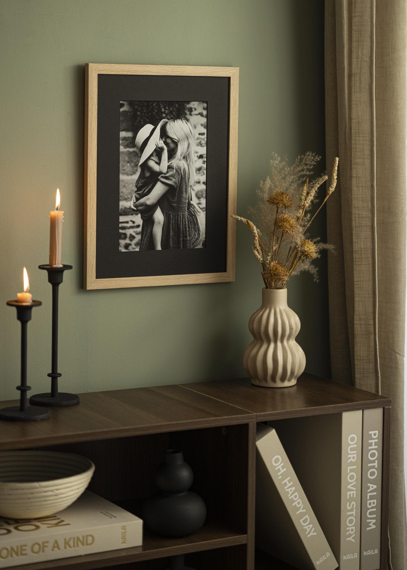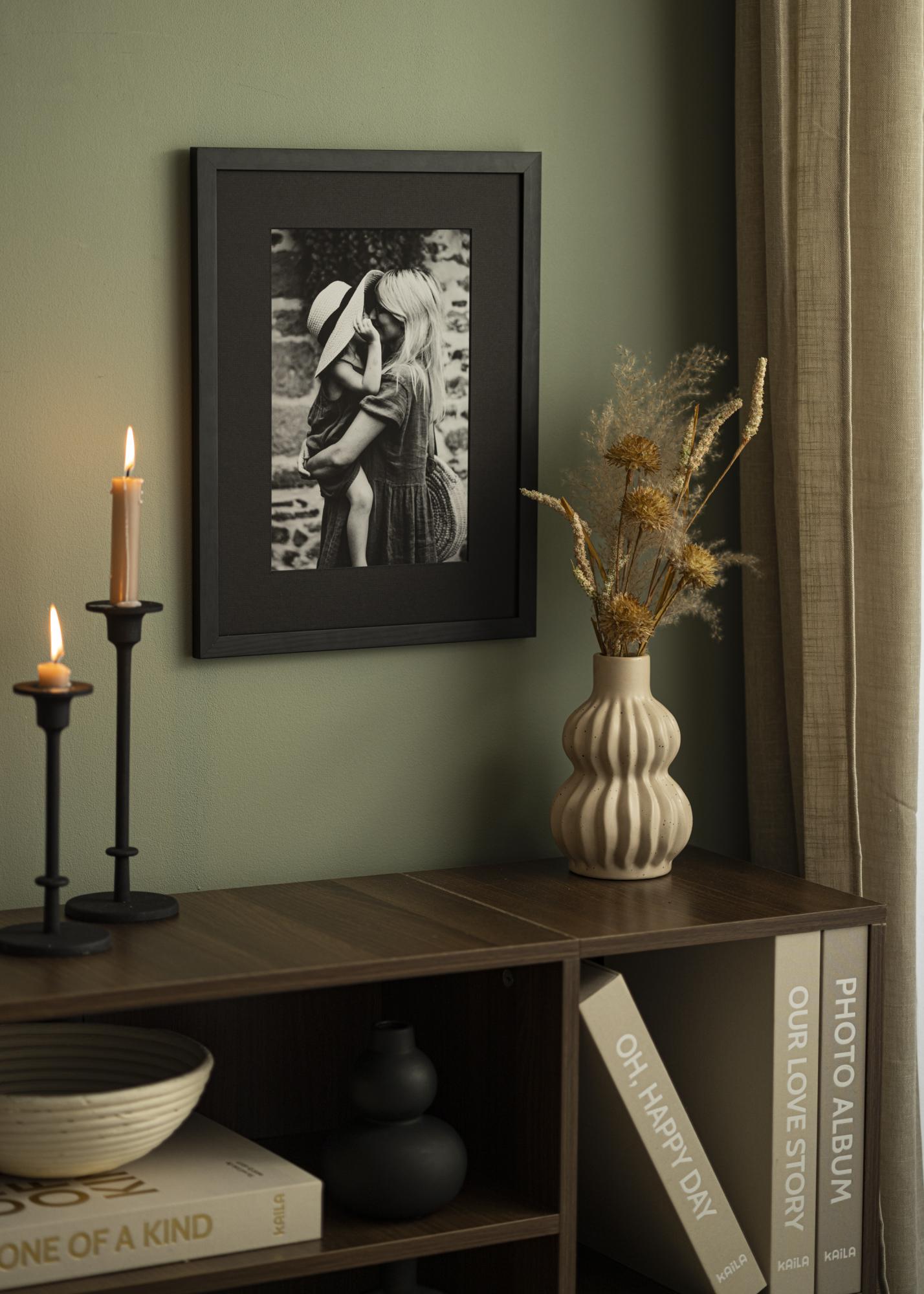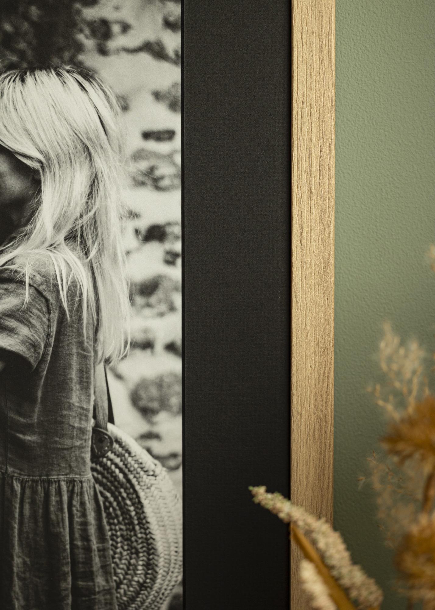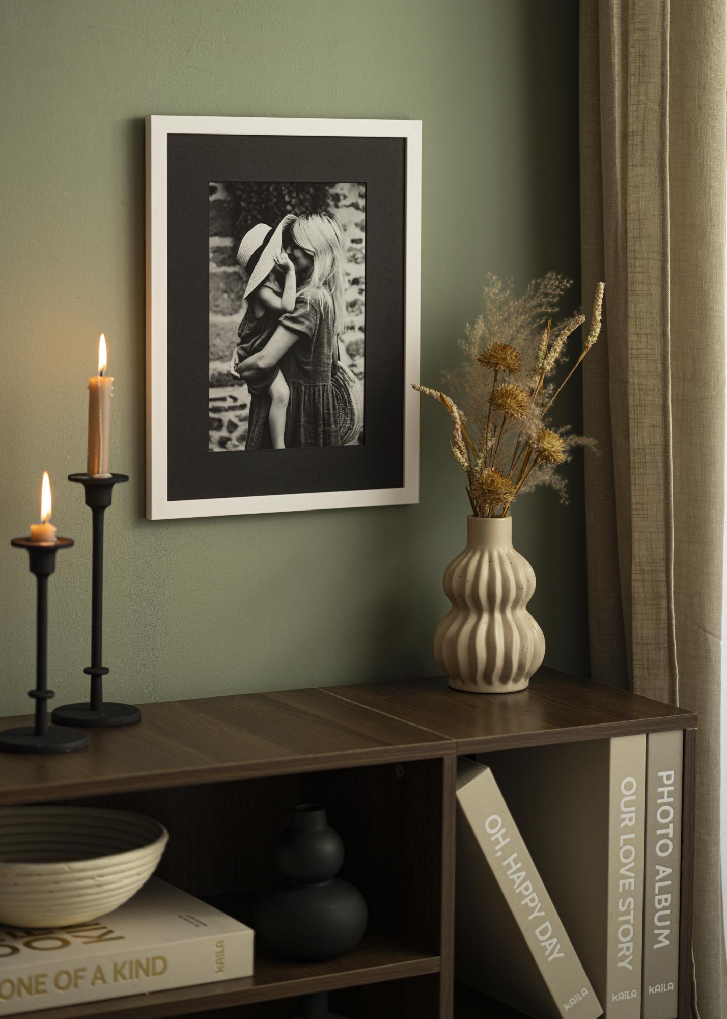 Een zwart passe-partout past goed bij de meeste omgevingen en geeft jouw inlijsting een elegant uiterlijk.
