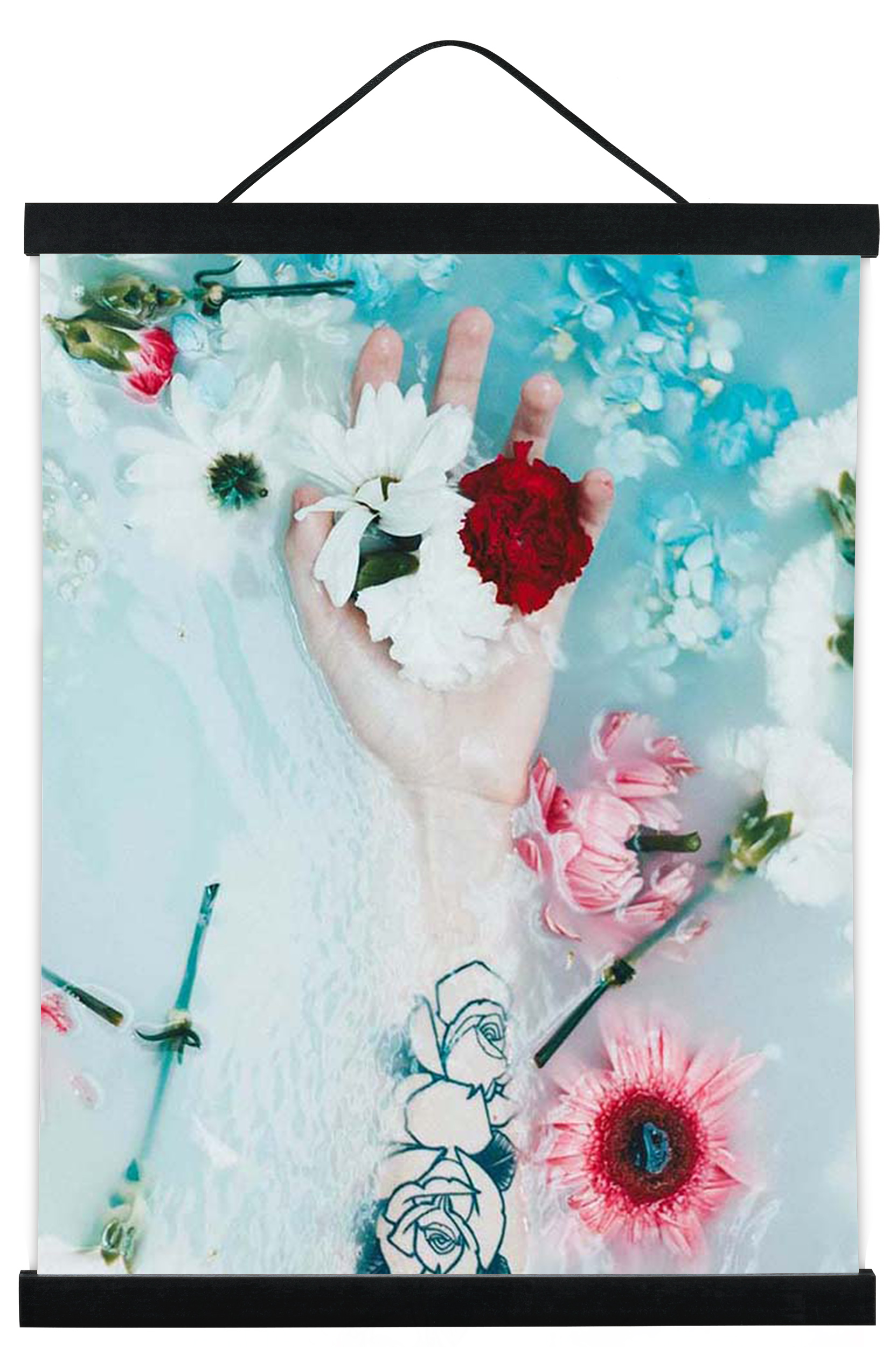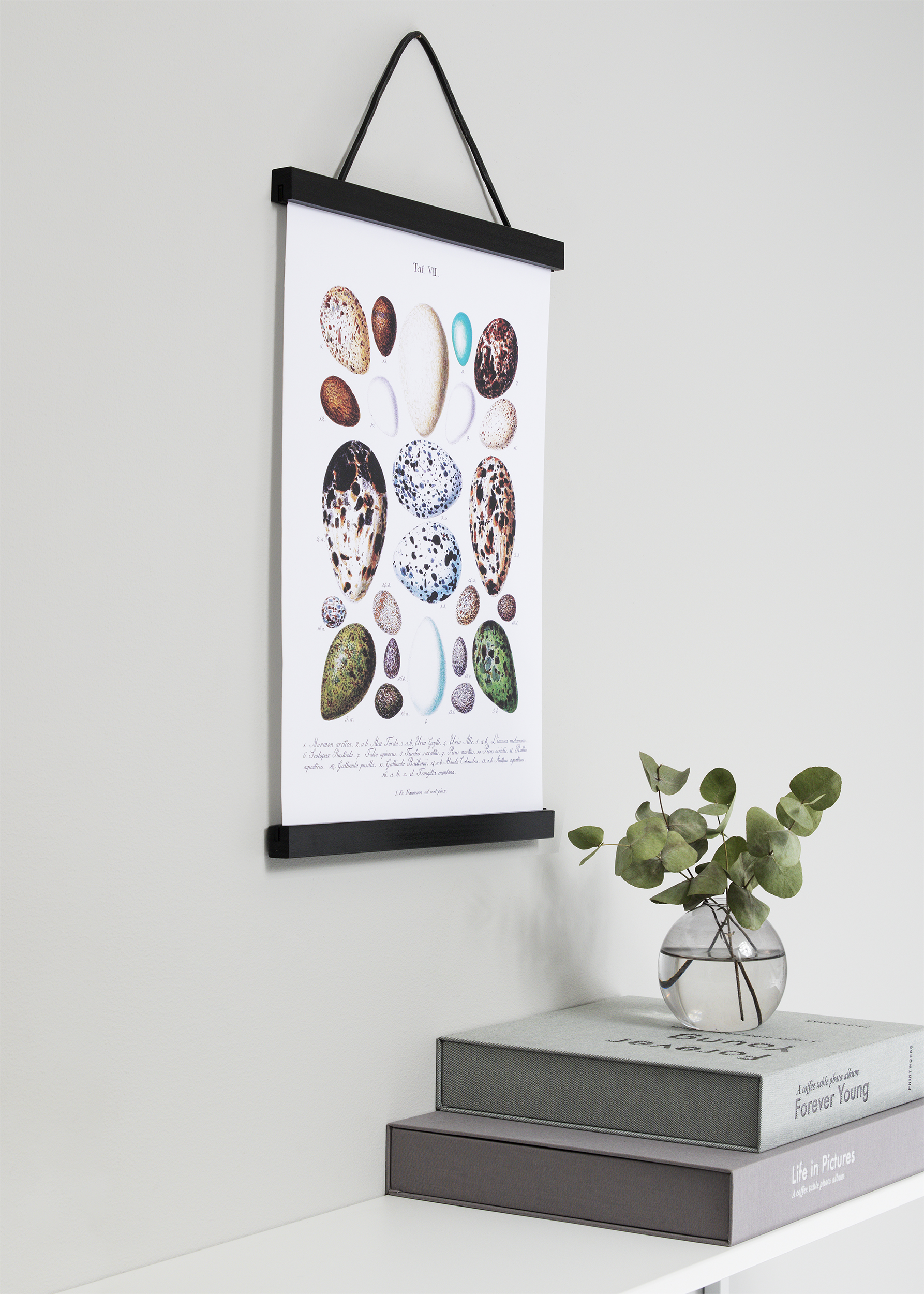 Plaats je poster of fotovergroting in een stijlvolle posterhanger! De simpele en slimme constructie zorgt ervoor dat het papier recht en mooi hangt zonder dat de randen worden beschadigd. Deze variant is geschikt voor afbeeldingen met een maximale breedte van 61 cm.