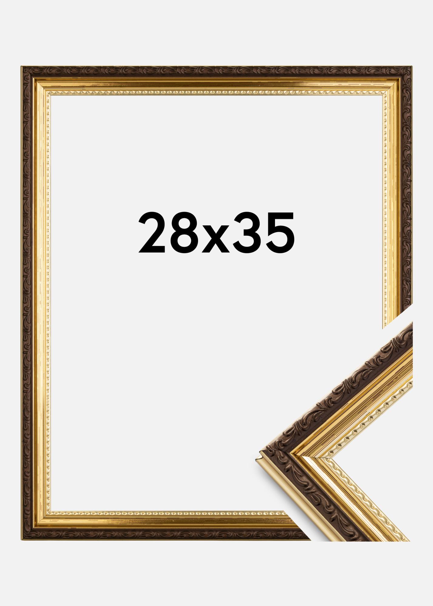 Op zoek naar een mooi gedecoreerde lijst in een oudere stijl? Abisko Acrylglas Goud is een massieve gouden fotolijst met prachtige stijlvolle ornamenten. Het frame is 25 mm breed en heeft een glanzende gouden kleur met een sierlijke bruine rand in het midden. Het gouden gedeelte is elegant, met een golvend patroon dichtbij het glas.