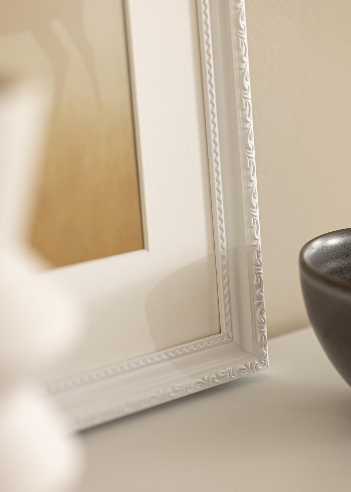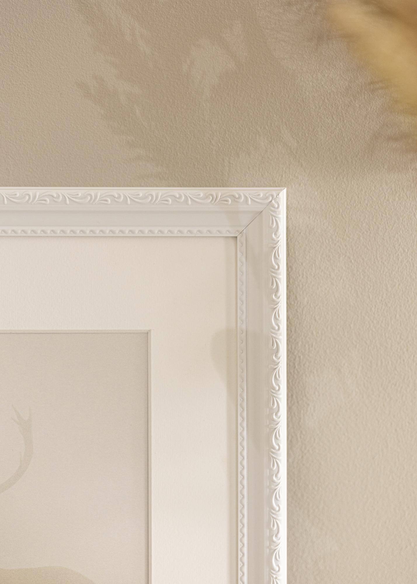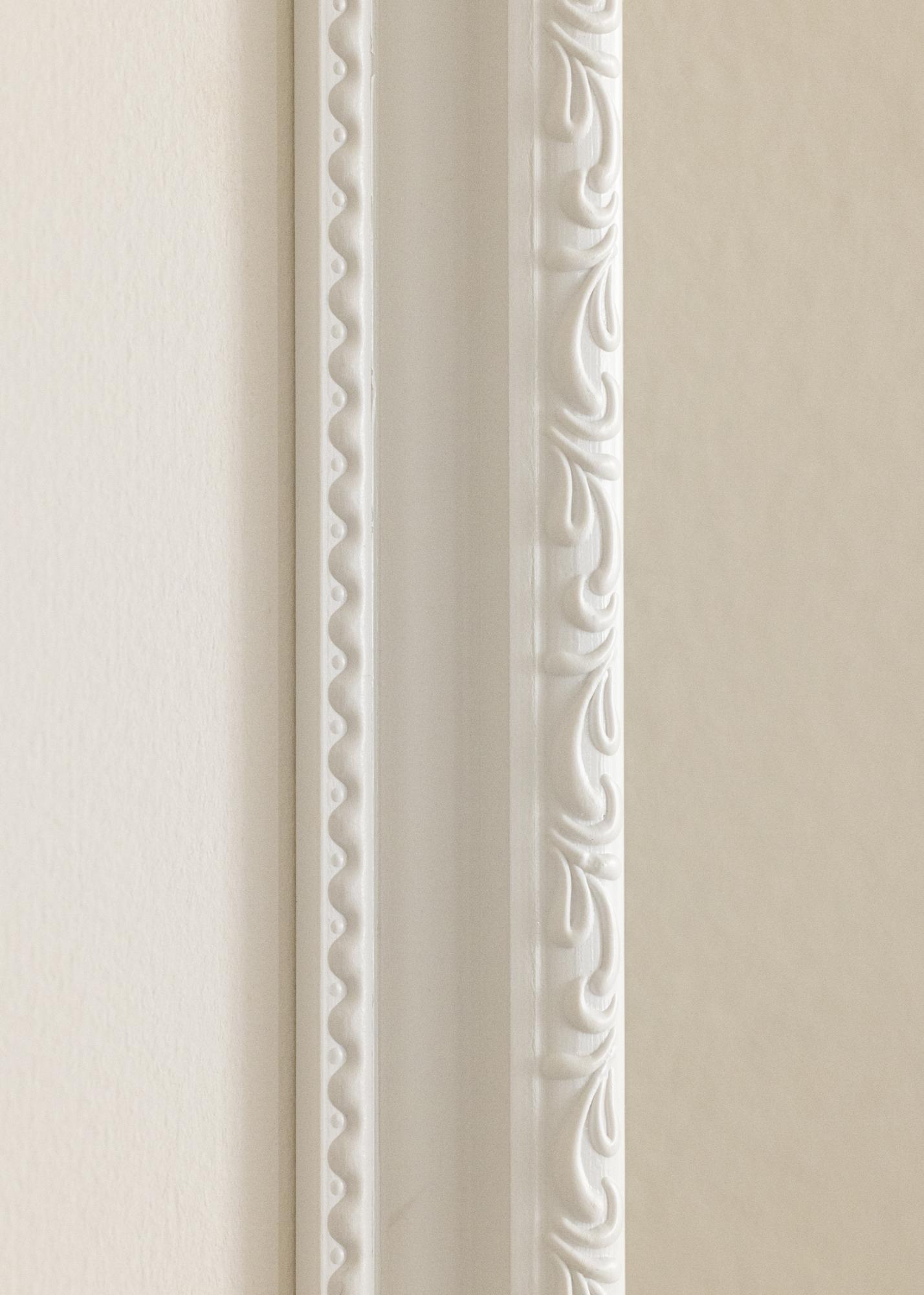 Abisko Wit is een elegante fotolijst in retrostijl met mooie versieringen. Perfect voor degene die op zoek is naar een witte lijst in een oudere stijl.