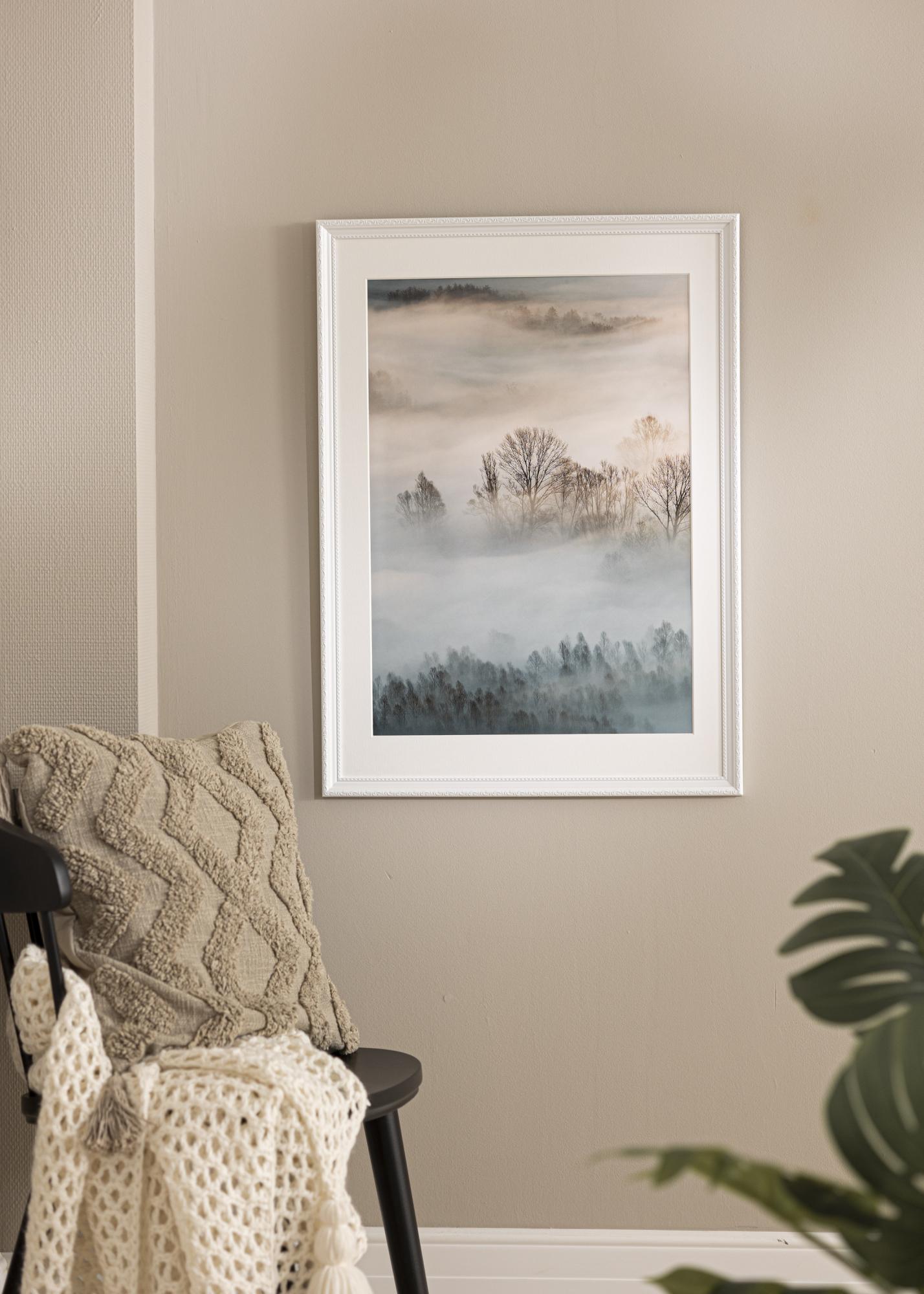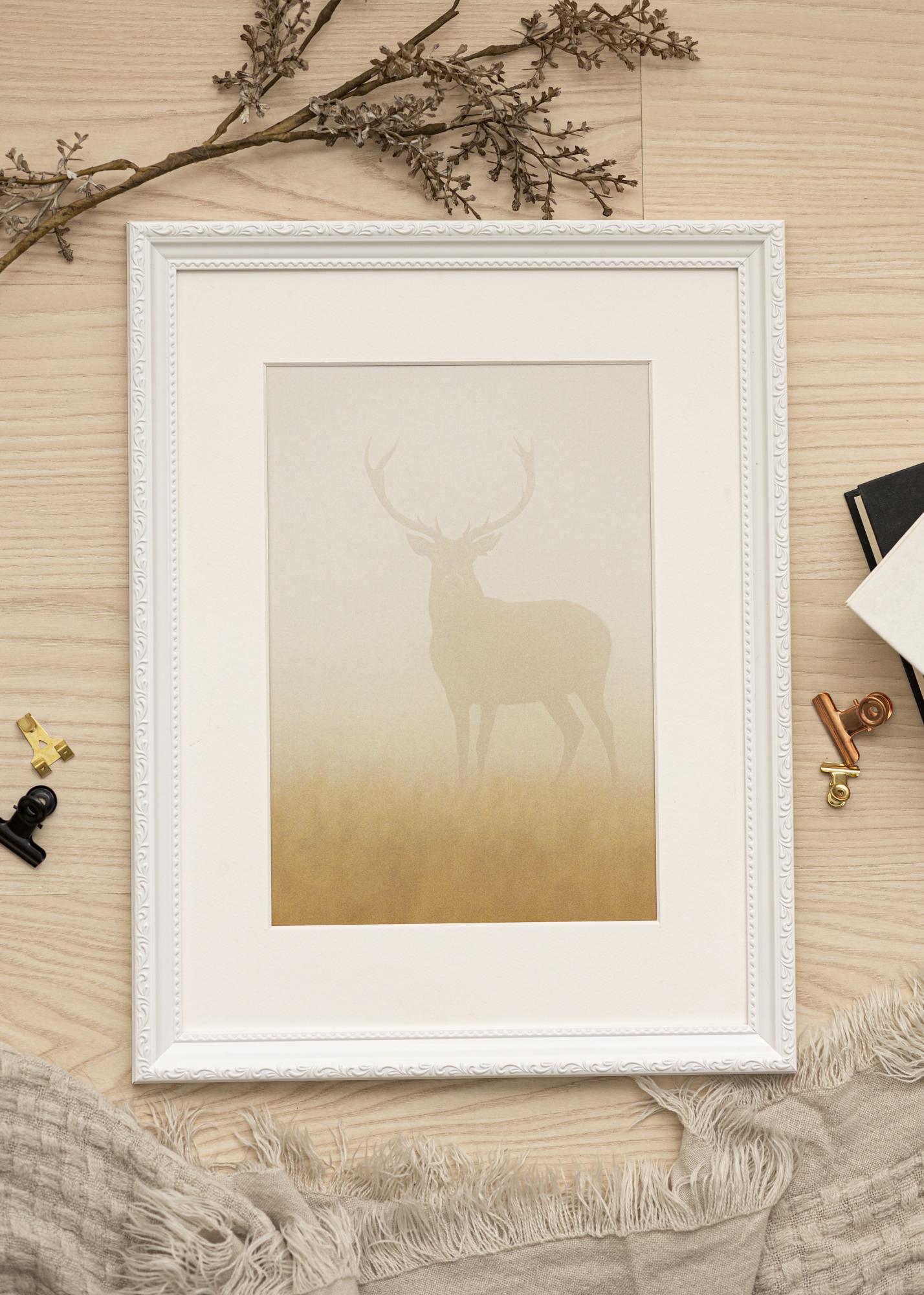 Start de lijstkiezer »Abisko Wit is een elegante fotolijst in retrostijl met mooie versieringen. Perfect voor degene die op zoek is naar een witte lijst in een oudere stijl.