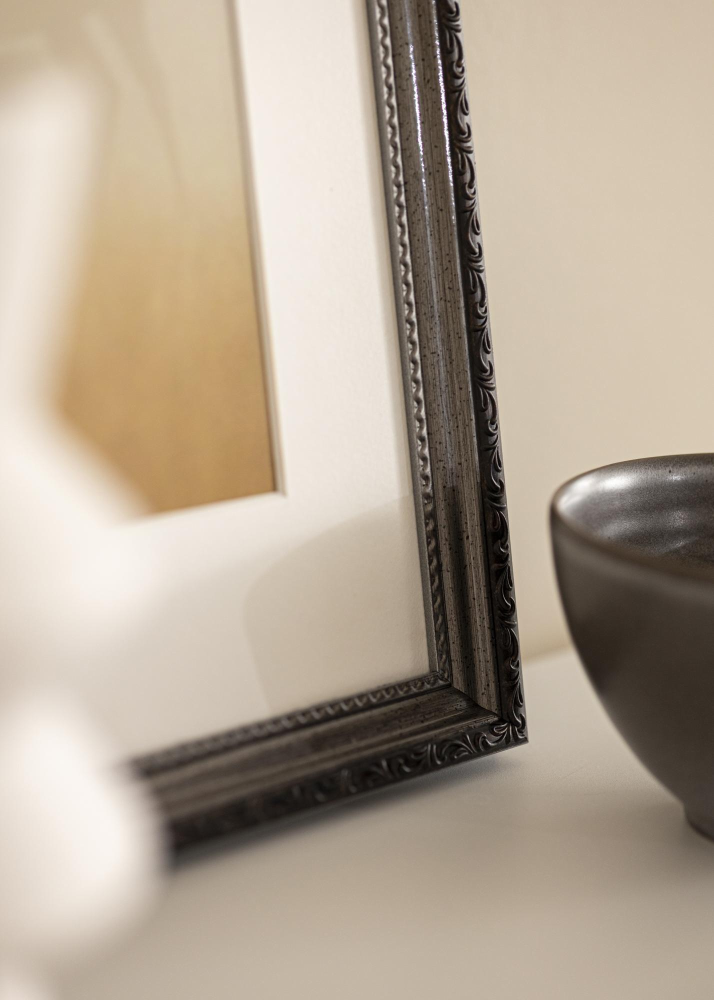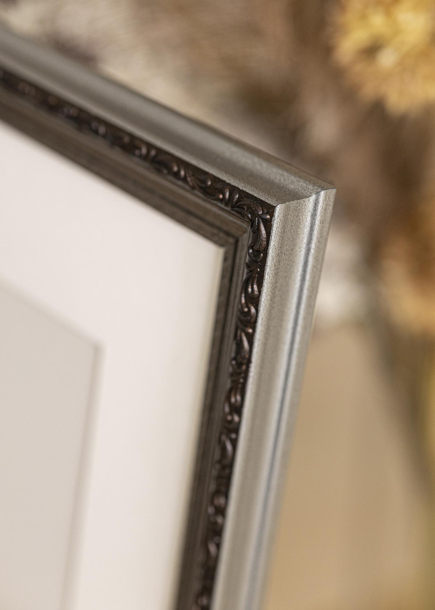 Start de lijstkiezer »Abisko is een mooie zilverkleurige lijst in retrostijl me fijne versieringen. Een perfecte keus voor degene die op zoek is naar een klassieke, zilverkleurige lijst.