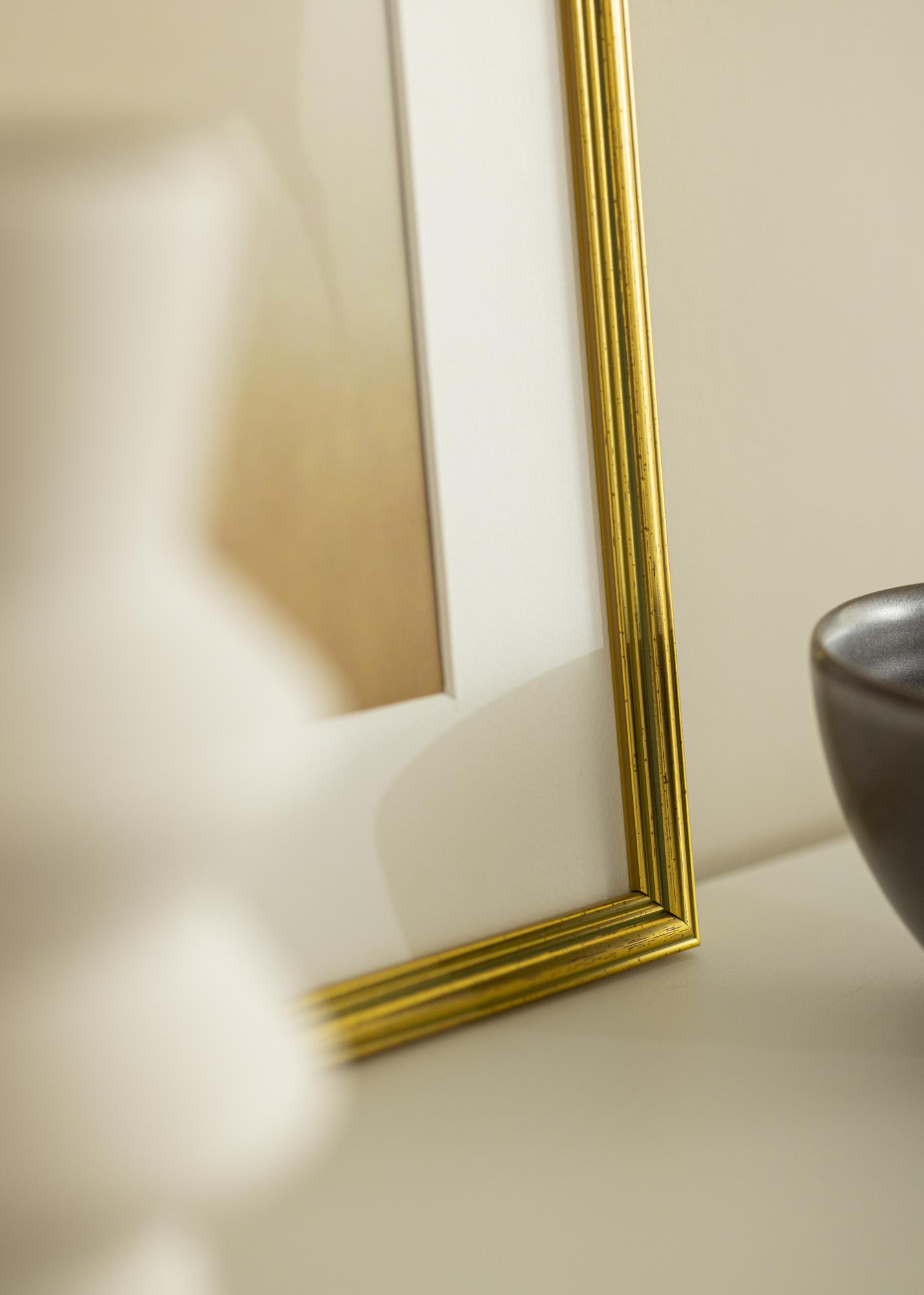 Mooie goudkleurige lijst bewerkt met rood en uitgevoerd in een klassiek en tijdloos design. Dankzij de neutrale goudkleur is dit een lijst die goed samengaat met vele afbeeldingen en combinaties.