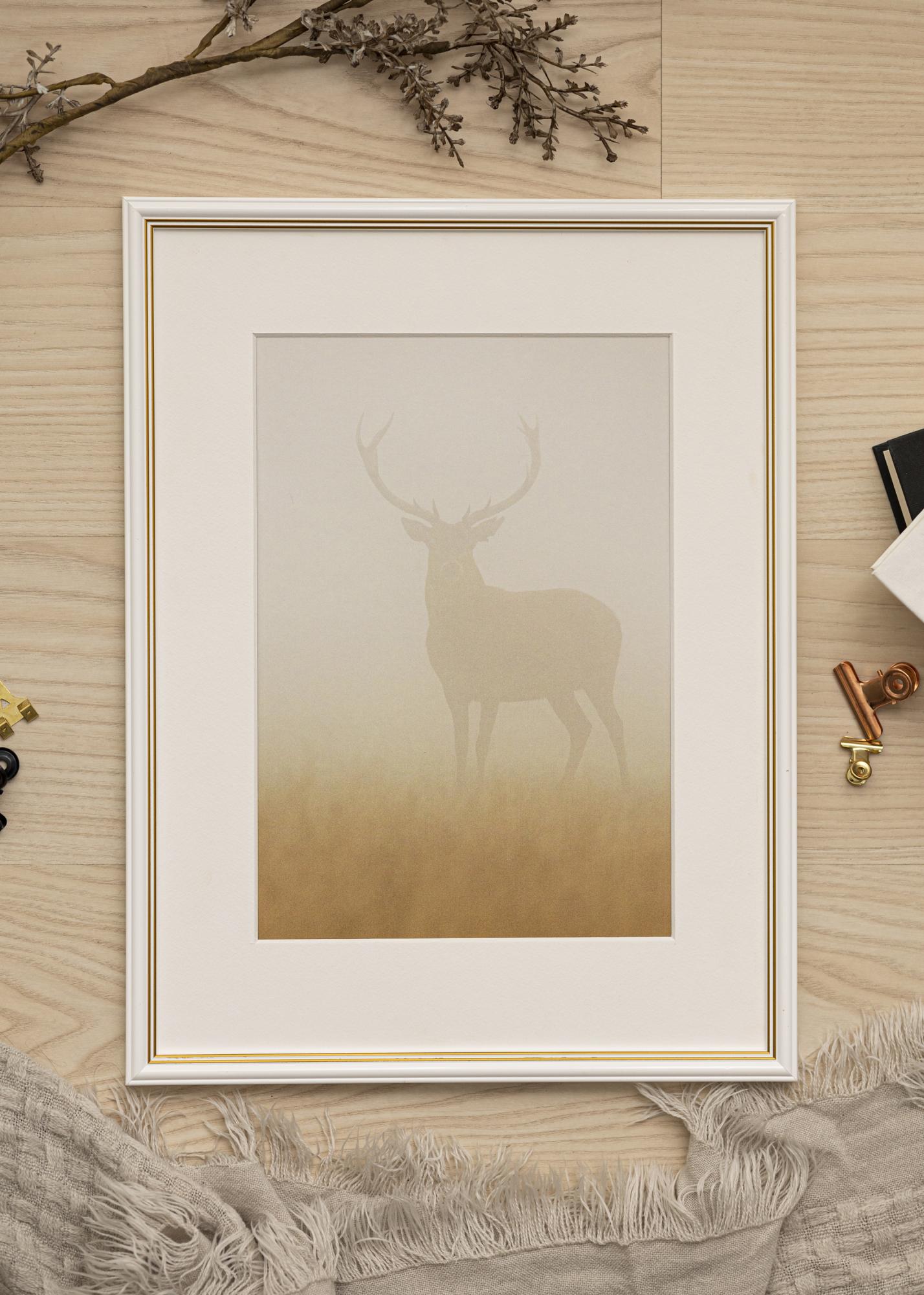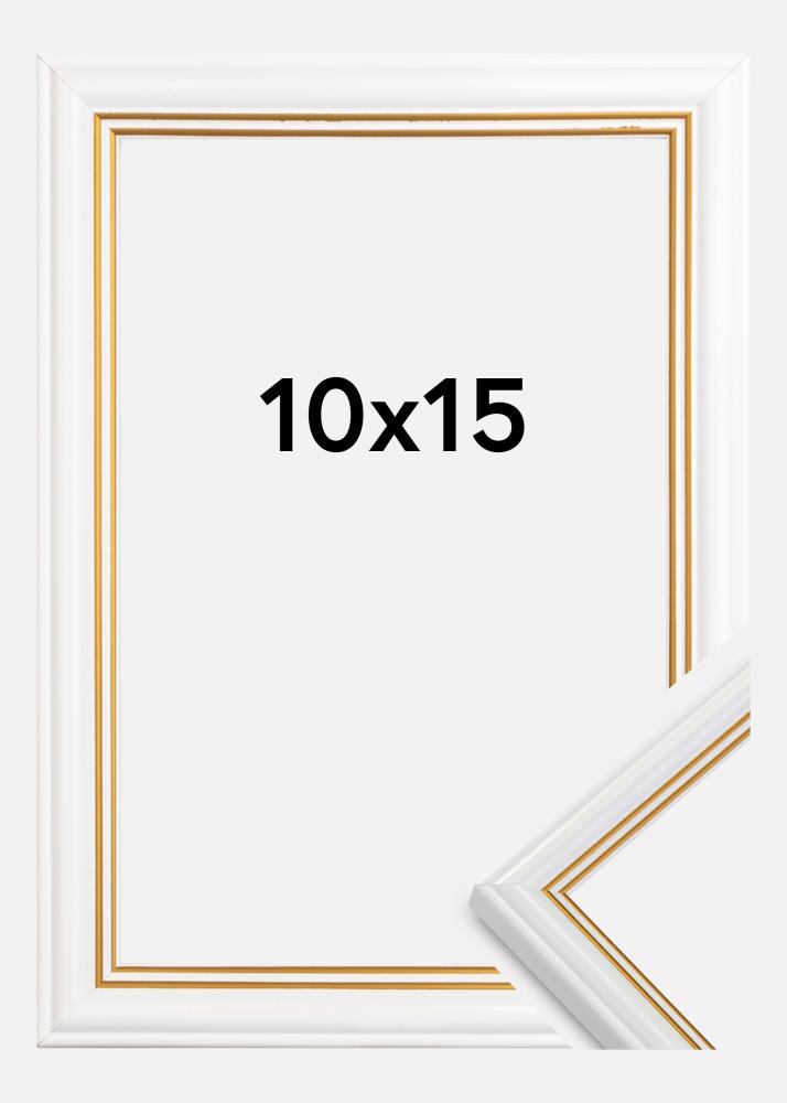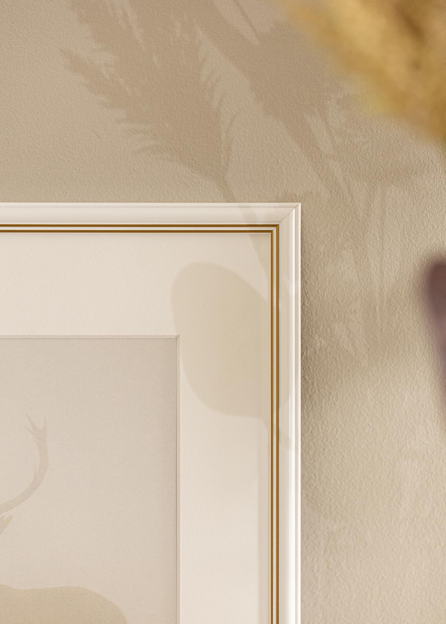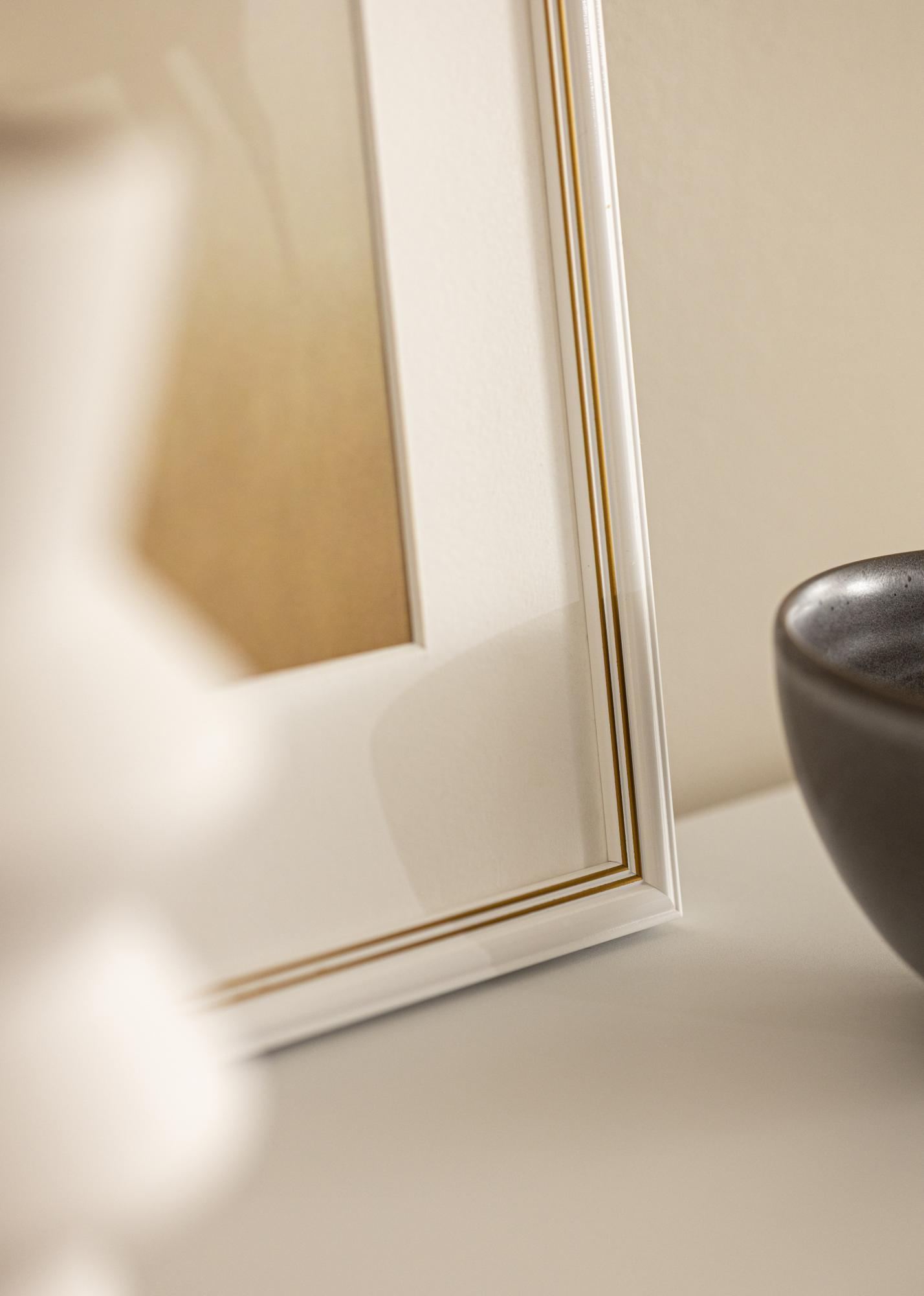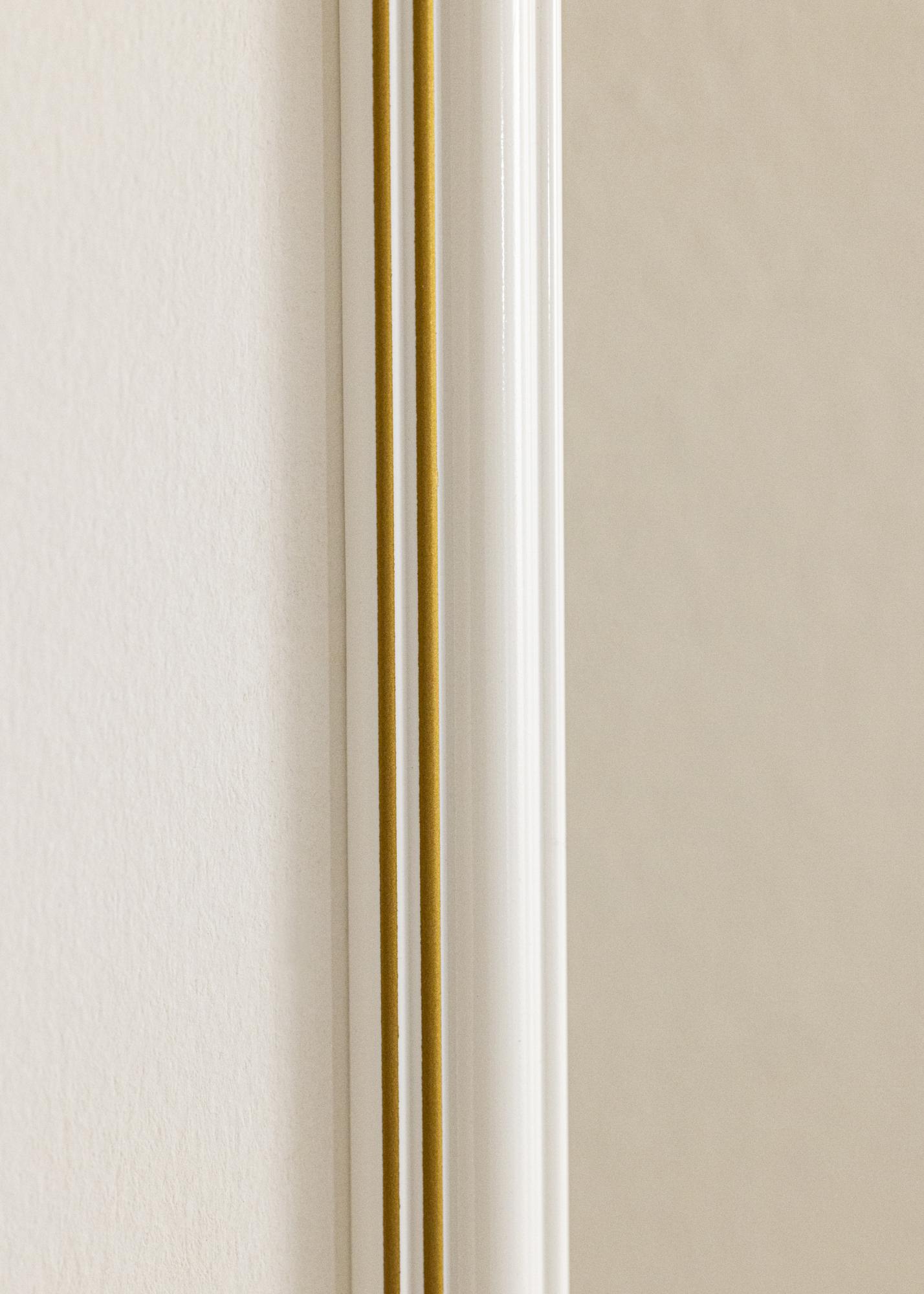 Wanneer je op zoek bent naar een stijlvolle en elegante fotolijst tegen een goede prijs, dan is "Classic Wit" de lijst waar je naar zoekt. De lijst heeft een wit, afgerond profiel en is versierd met twee dunne, goudkleurige lijnen die vlak langs de binnenzijde van de lijst lopen. Perfect voor bijvoorbeeld portretfoto's of mooie natuurfoto's.