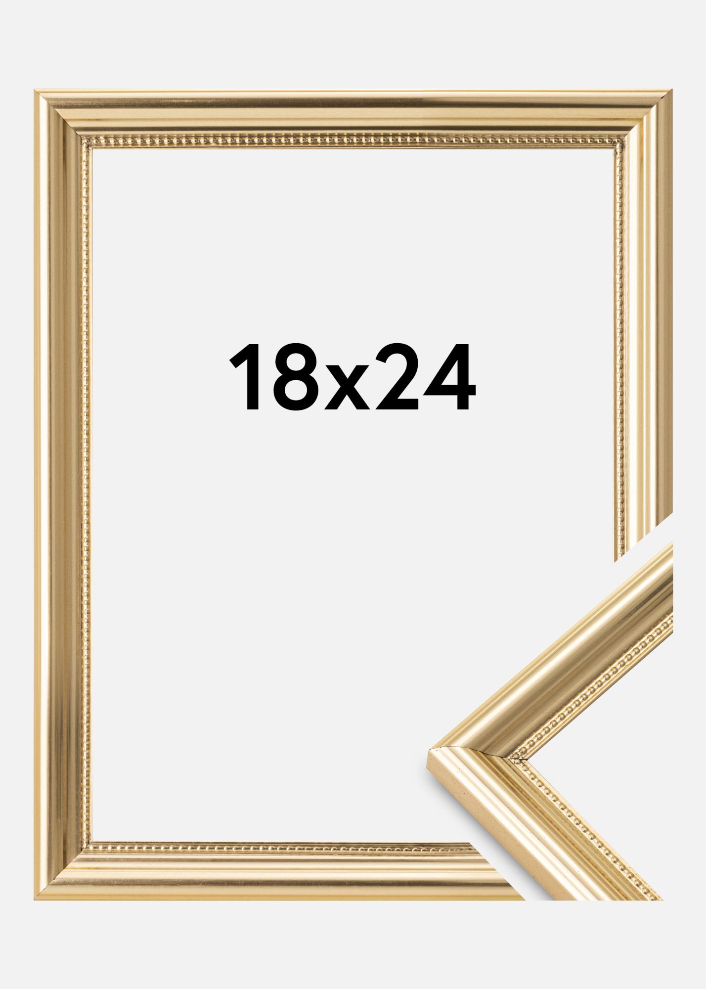 Geef je muren een vleugje elegantie met dit 18x24 cm gouden frame. De goudkleurige, geprofileerde rand van 20 mm breed combineert klassieke charme met moderne glans. Het glanzende oppervlak van de rand reflecteert het licht prachtig en voegt een luxueus gevoel toe aan je gekozen kunstwerk of foto.