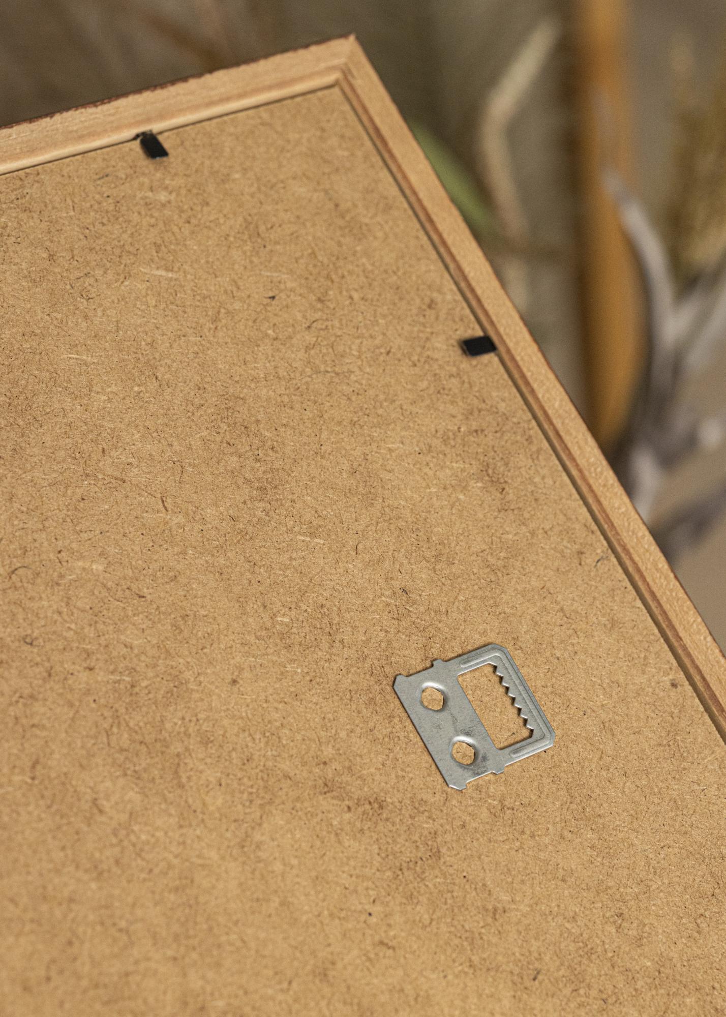 De lijst heeft een discreet en strak frame van 15 mm breed en een diepte van 14 mm, wat een nette uitstraling aan de muur geeft. Bovendien is hij uitgerust met handige metalen ophanghaken aan de achterkant, waardoor je de lijst zowel horizontaal als verticaal naar wens kunt ophangen.