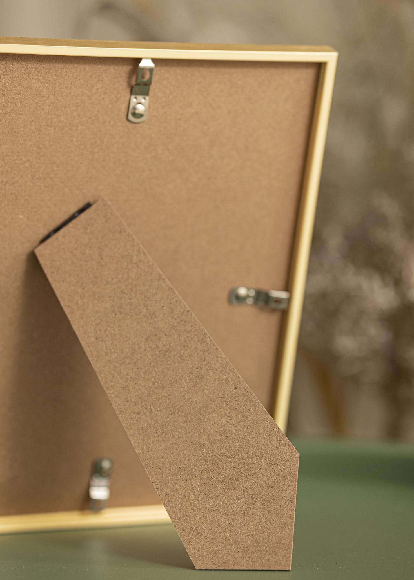 Een gouden fotolijst met een glanzend oppervlak is een trendy keuze die net zo goed in de kinderkamer past als in de stijlvolle fotowand in de woonkamer. New Lifestyle Acrylglas Shiny Gold heeft een smal frame met een licht afgerond profiel, die je schilderijen een luxe vleugje goud geeft terwijl je afbeeldingen worden benadrukt. De achterkant van de lijst is gemaakt van MDF en wordt op zijn plaats gehouden met kleine metalen clips. Door de clips omhoog te buigen, kan de achterkant los gemaakt worden en kan de afbeelding eenvoudig in het frame geplaatst worden.