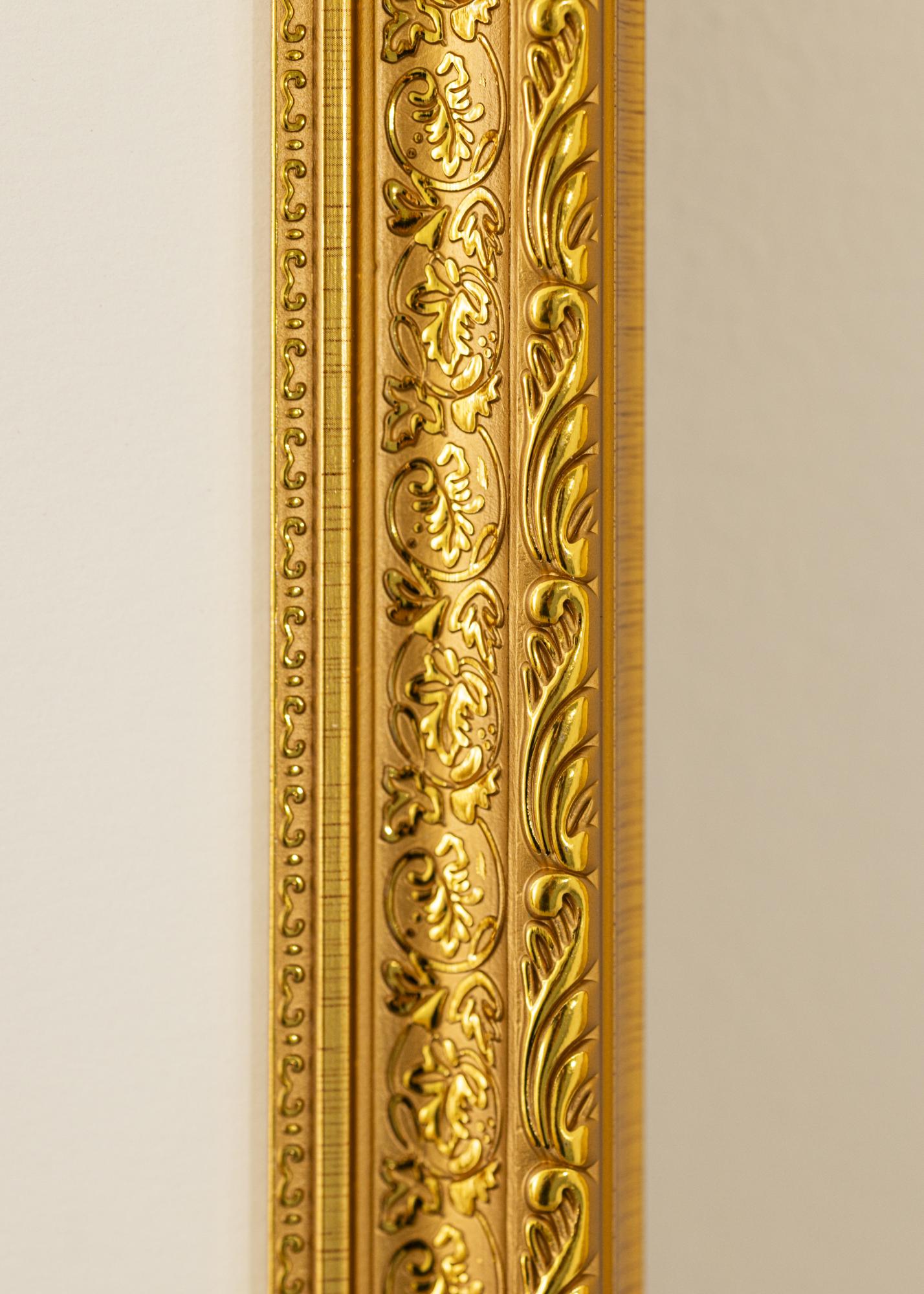 Transformeer je muren met een fotolijst die elegantie en stijl uitstraalt. Deze goudkleurige fotolijst is perfect om kunstwerken, foto's of diploma's te accentueren. Met een formaat van 70x100 cm biedt deze royaal ruimte voor je favoriete motieven. Het klassieke ontwerp met prachtige ornamenten en gedetailleerd profiel geeft een luxe gevoel dat nooit uit de tijd raakt.