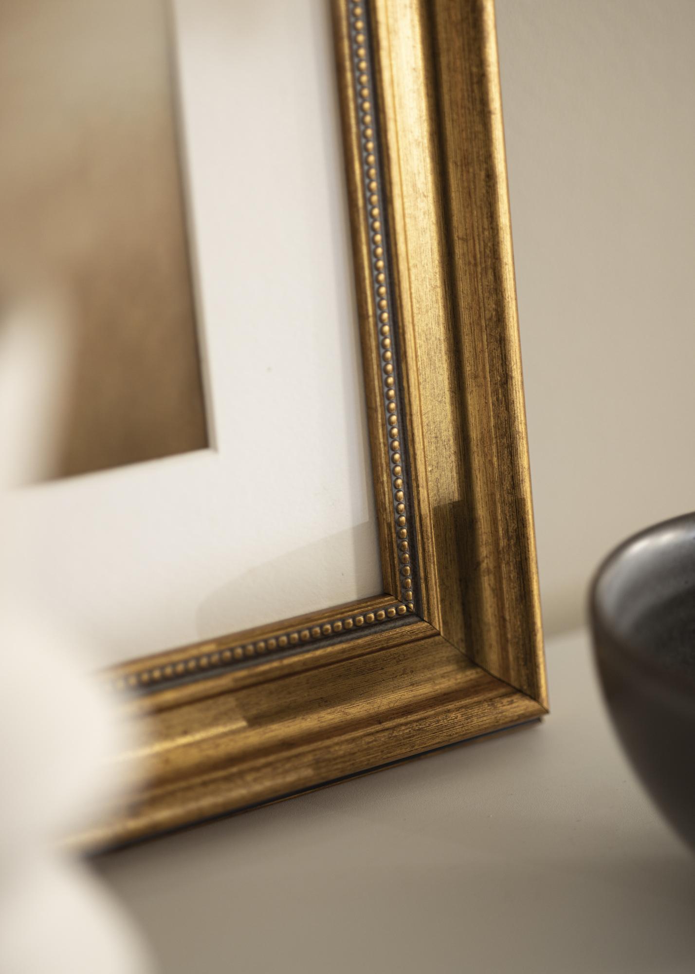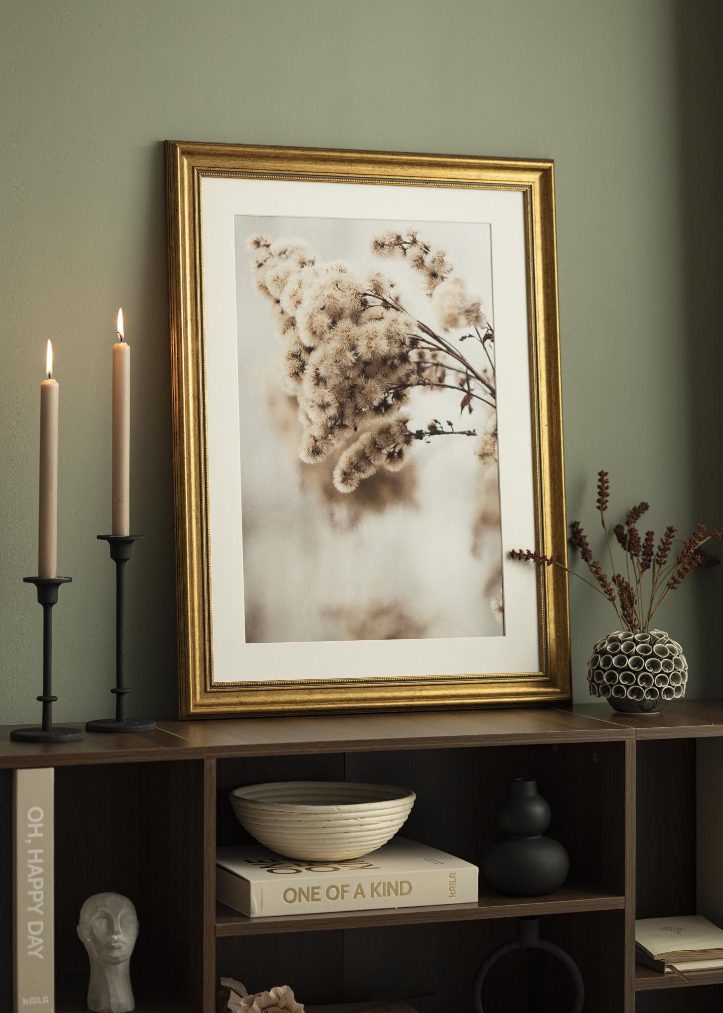 Rococo is een gouden lijst die een heerlijk vintage gevoel geeft aan al je favoriete motieven. De lijst heeft een 50 mm brede lijst in tinten van glanzend antiekgoud, en een prachtig versleten oppervlak dat het klassieke uiterlijk van de lijst versterkt. De lijst is geschikt voor persoonlijke foto's evenals voor abstracte posters – en ongeacht welk motief je kiest, je kunt het zonder problemen monteren. Verwijder gewoon de achterkant van de lijst, die op zijn plaats wordt gehouden door kleine buigzame pinnen, en plaats dan je wandkunst naast het glas van de lijst.