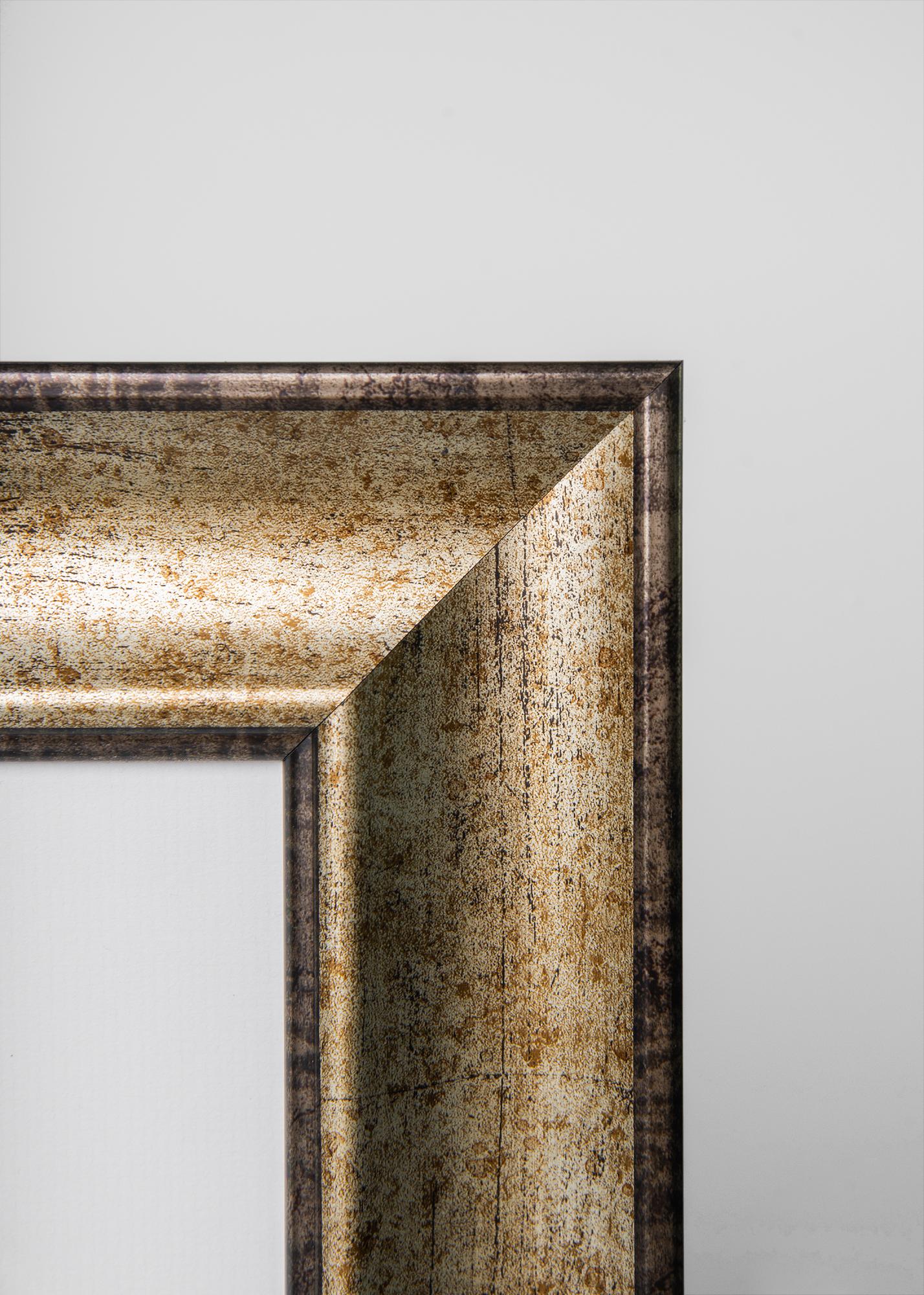 Fotolijst Saltsjöbaden Acrylglas Antiek Goud is een opvallend interieurdetail in huis, het trekt je oog naar het schilderij en stelt je afbeelding centraal. Het frame is maar liefst 64 mm breed en heeft een stijlvol naar binnen gebogen profiel. De zilver/goud-veranderende kleur roept klassieke antieke elegantie op. Een klassieke fotolijst als deze vormt een uitstekende aanvulling op mooie foto’s, maar kan ook worden gebruikt als stoer contrast met modernere afbeeldingen.