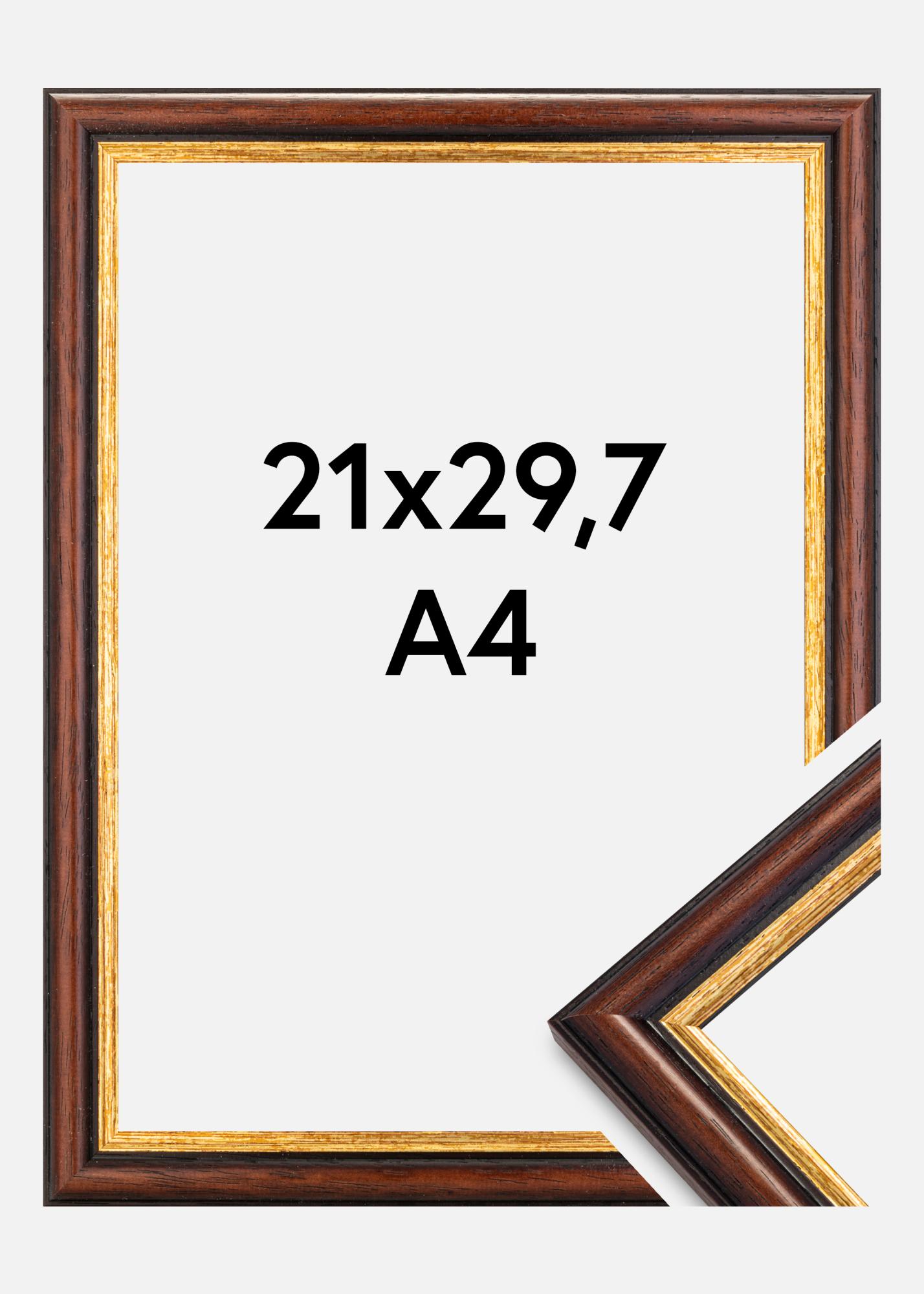 Laat deze fotolijst een mooi interieurdetail in je huis worden. De fotolijst is gemaakt in Zweden, gemaakt van hoogwaardig ayoushout en is geschilderd in een mooie warme bruine kleur. De bruine kleur wordt aangevuld met een elegante gouden streep die dichtbij de afbeelding staat, om een extra elegant gevoel te geven. De fotolijst heeft een klassieke uitstraling en kan gemakkelijk worden gecombineerd met veel verschillende afbeeldingen. Misschien wil je de lijst gebruiken in combinatie met een klassieke afbeelding om het traditionele gevoel te versterken? Of gebruik je deze fotolijst om een mooi contrast te creëren met een moderner onderwerp?