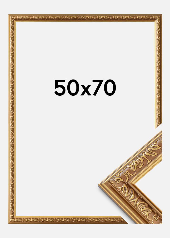 Verfraai je muren met een fotolijst die elegantie en klasse uitstraalt. Deze gouden schilderijlijst is ontworpen voor afbeeldingen van 50x70 cm, waardoor hij ideaal is om je favoriete kunstwerken of foto's te accentueren. Met een lijstbreedte van 28 mm en een diepte van 20 mm, biedt hij een robuuste en solide indruk terwijl hij toch een verfijnde esthetiek behoudt.