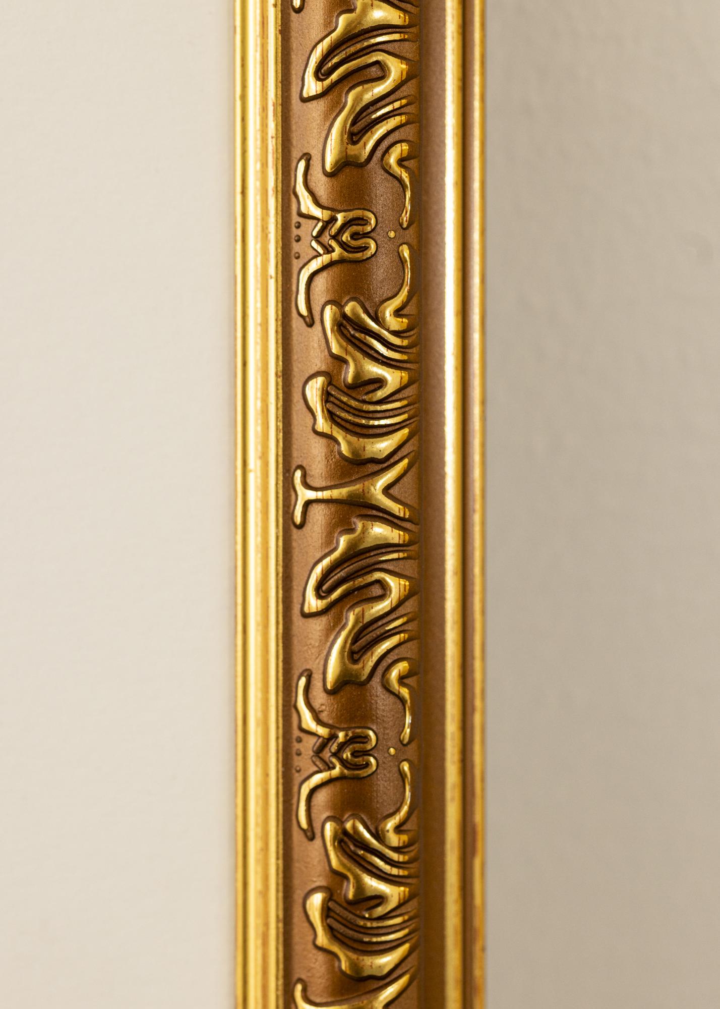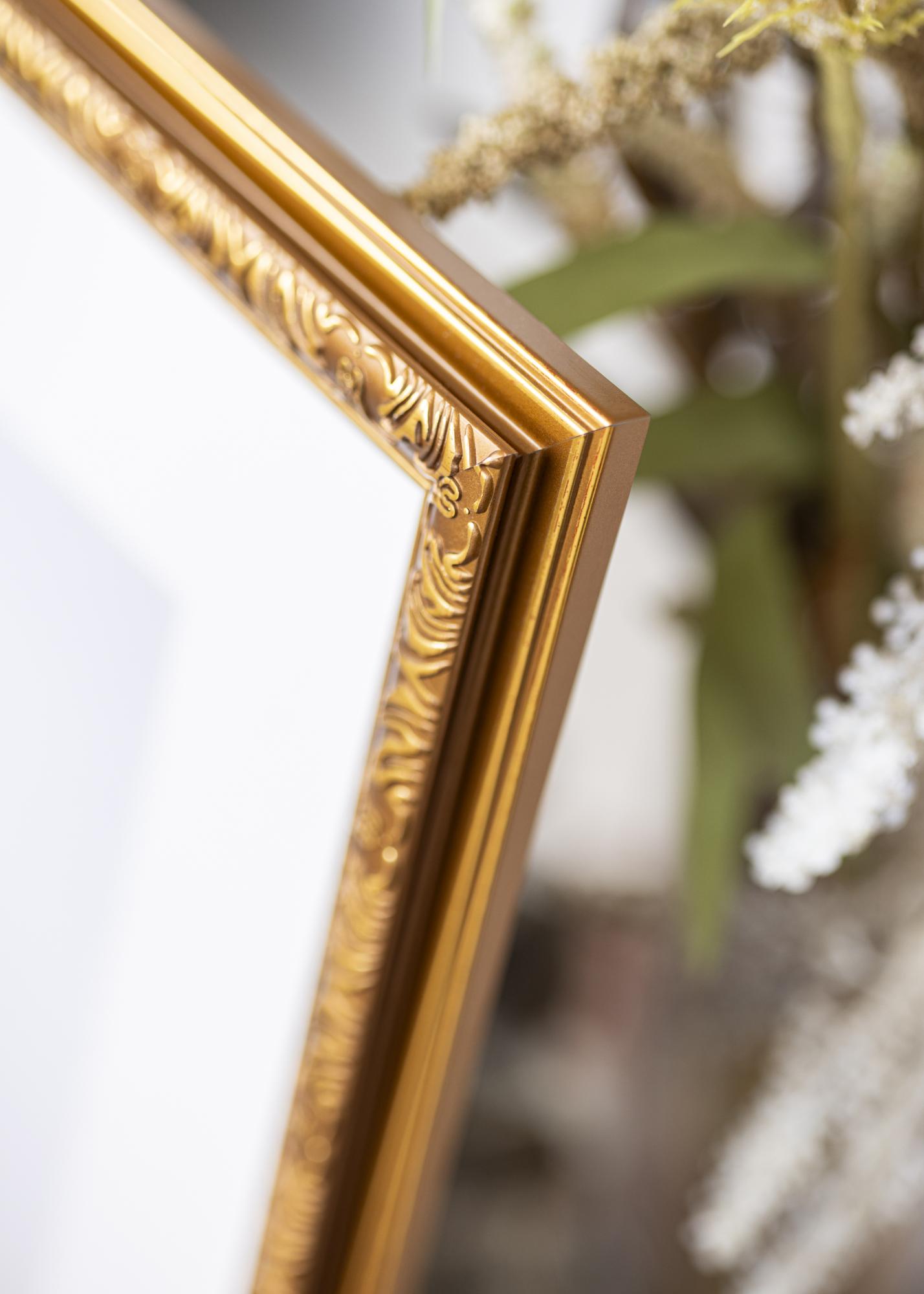 Deze goudkleurige fotolijst is een perfecte combinatie van klassieke elegantie en moderne functionaliteit. Met zijn formaat van 60x80 cm is hij ideaal om je favoriete motieven te accentueren, of het nu gaat om een kunstwerk of een foto. De luxueuze goudafwerking en de decoratieve, geornamenteerde details langs de binnenrand van de lijst geven een verfijnde en tijdloze uitstraling die uitstekend past in zowel klassieke als elegante interieurstijlen.