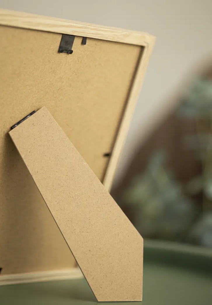 De lijst is gemaakt van MDF-materiaal met een fineer van eikenhout en heeft een dun profiel van 14 mm. Er is voldoende ruimte om je afbeeldingen aan te vullen met een luxe passe-partout, dankzij de 12 mm binnendiepte (sponningdiepte) van de lijst.