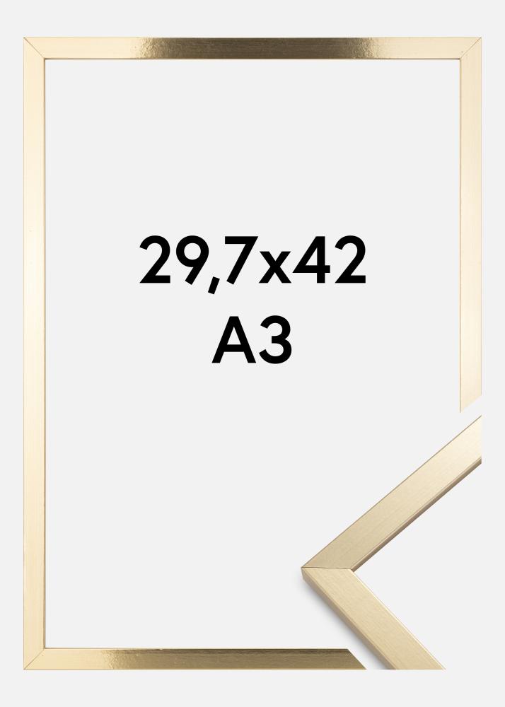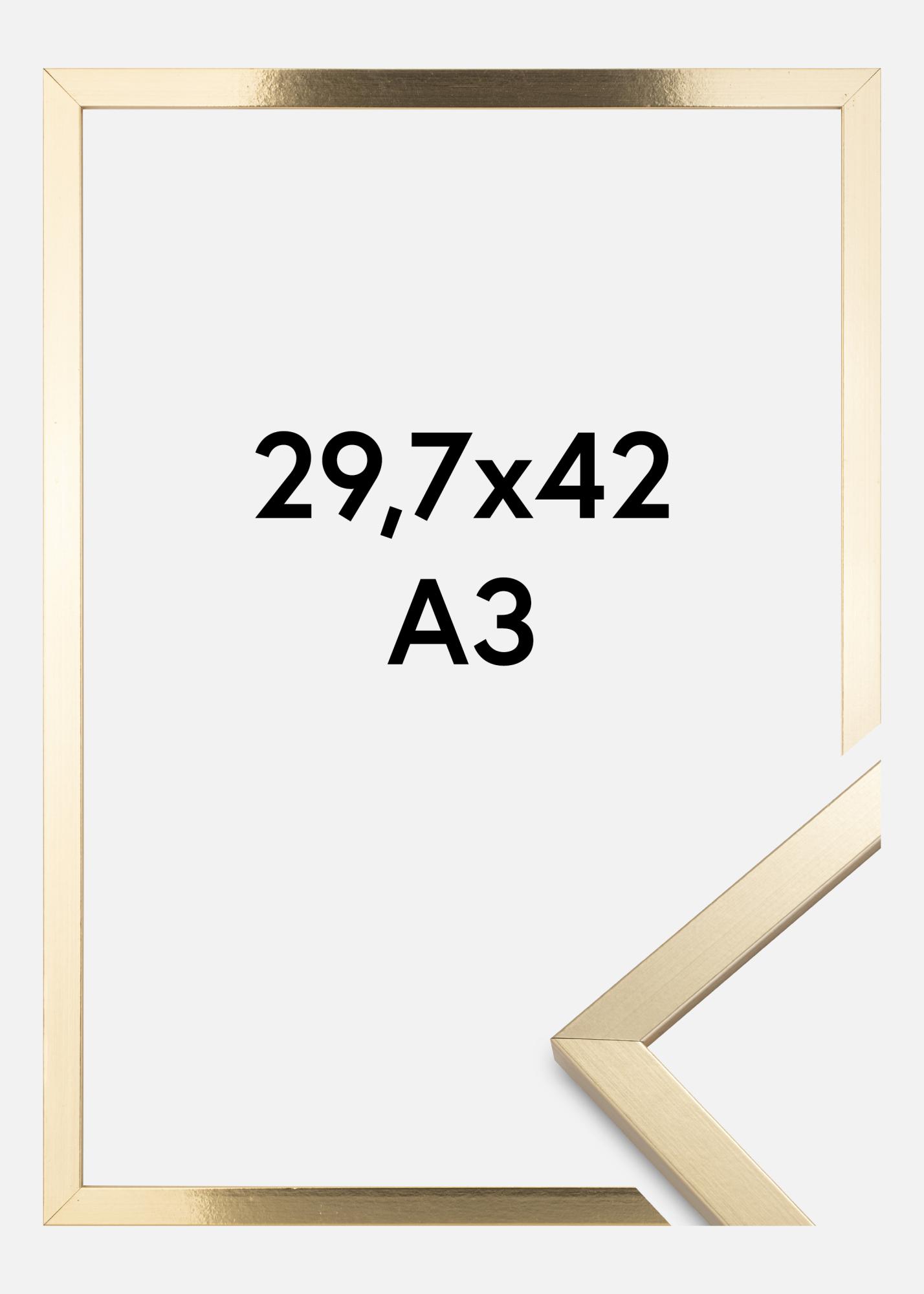 Creëer een elegante en tijdloze sfeer in je huis met onze stijlvolle gouden lijst in de maat 29,7x42 cm (A3). Deze goudkleurige fotolijst is de perfecte omlijsting voor je kunstwerken, certificaten of favoriete foto's. Met zijn glanzende oppervlak en klassieke ontwerp, wordt het een blikvanger op elke muur.