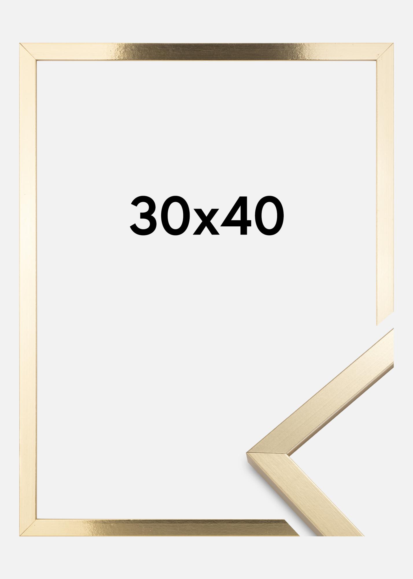Creëer een elegante fotowand met onze stijlvolle gouden fotolijst in de maat 30x40 cm. Deze gouden fotolijst is de perfecte omlijsting voor uw favoriete foto's, kunstwerken of posters. Met zijn glanzende oppervlak en klassieke ontwerp zal het uw motief laten opvallen en een luxe gevoel geven.