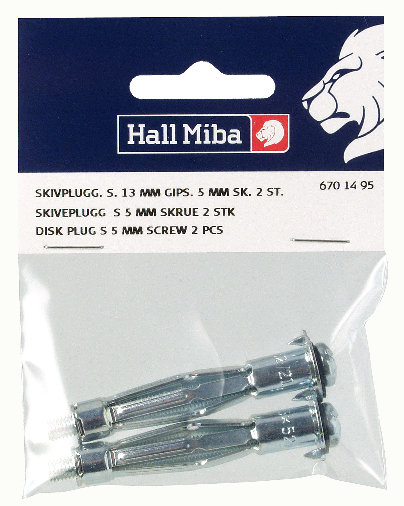 2 stuks hollewandpluggen en M5 schroeven voor een 13 mm gipsmuur. Het spoor van de hollewandplug is geschikt voor een schroefmaat van 8 mm.