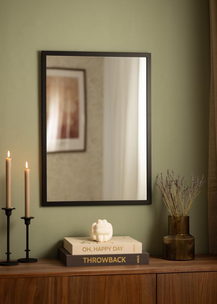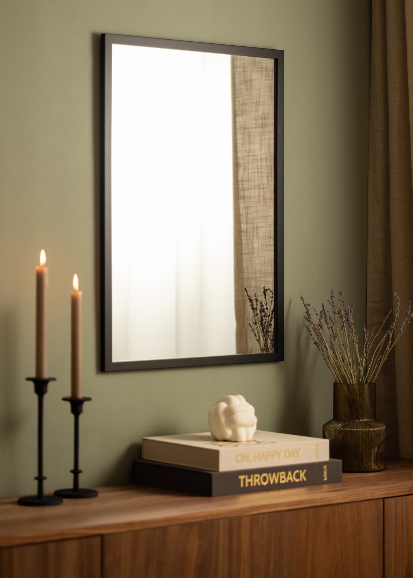 Black Wood is een geweldige keuze voor wie op zoek is naar een stijlvolle wandspiegel met een eenvoudige zwarte lijst. De spiegel is gemaakt van geschilderd ayoushout en is voorzien van ongekleurd spiegelglas. Het 22 mm brede frame heeft een traditioneel vierkant profiel waardoor het spiegeloppervlak centraal staat.