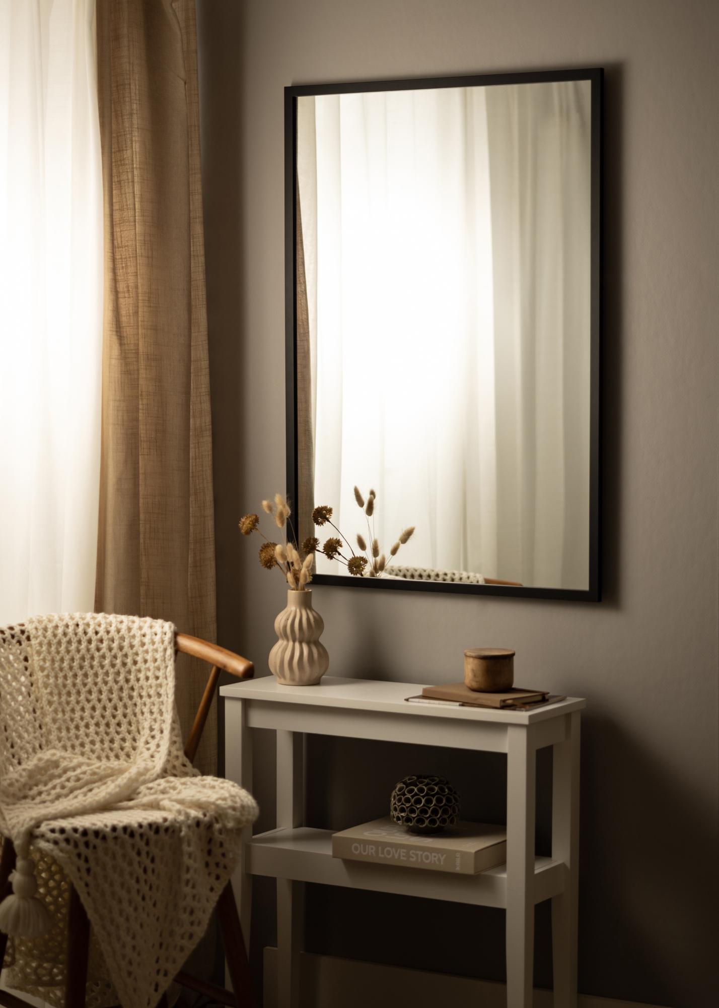 Black Wood is een geweldige keuze voor wie op zoek is naar een stijlvolle wandspiegel met een eenvoudige zwarte lijst. De spiegel is gemaakt van geschilderd ayoushout en is voorzien van ongekleurd spiegelglas. Het 22 mm brede frame heeft een traditioneel vierkant profiel waardoor het spiegeloppervlak centraal staat.