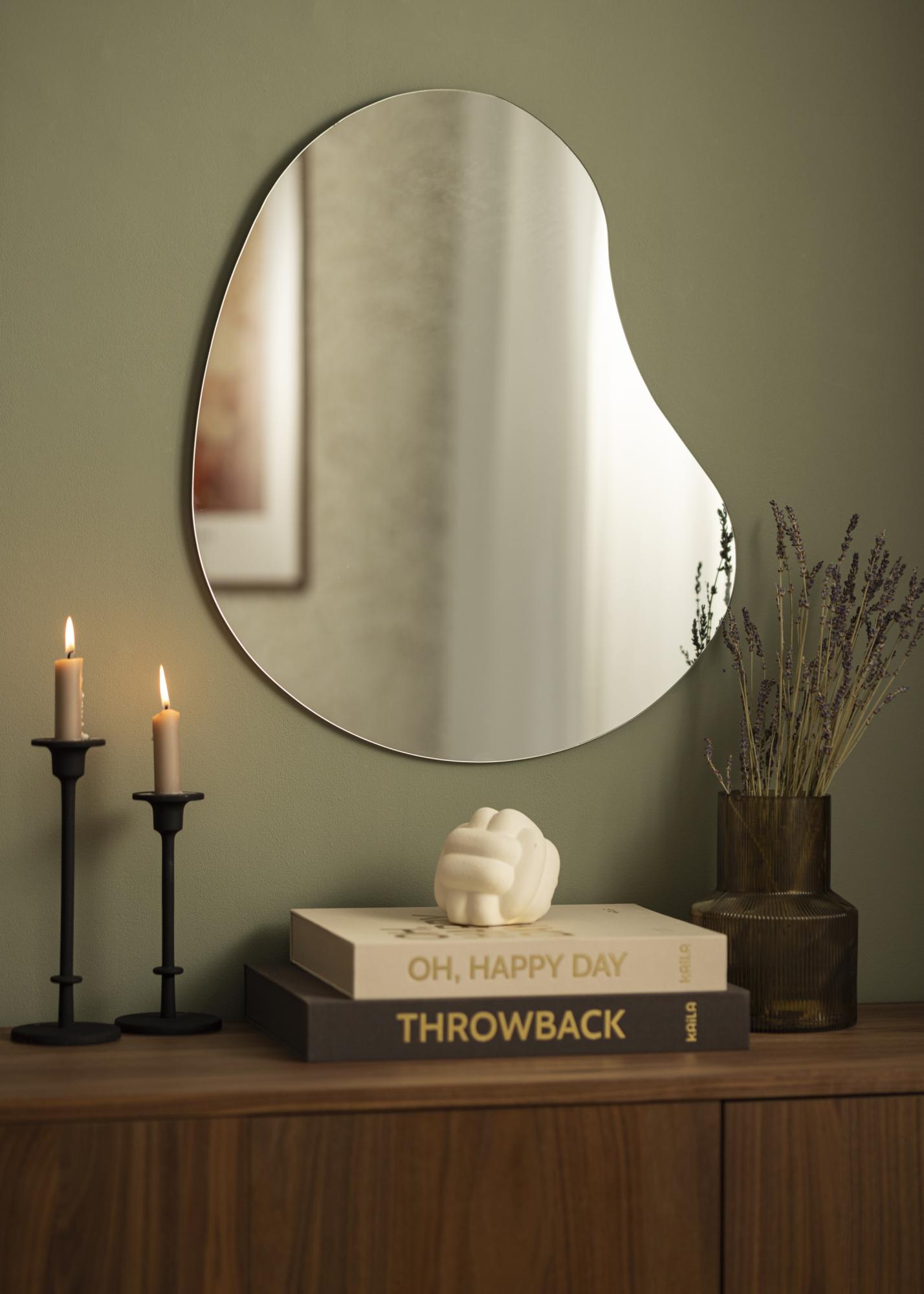 Met afmetingen van 50x60 cm is de spiegel perfect op maat om in de meeste ruimtes te passen, of het nu in de hal, slaapkamer of badkamer is. Zijn unieke vorm creëert een illusie van ruimte en licht, waardoor elke kamer groter en uitnodigender aanvoelt.