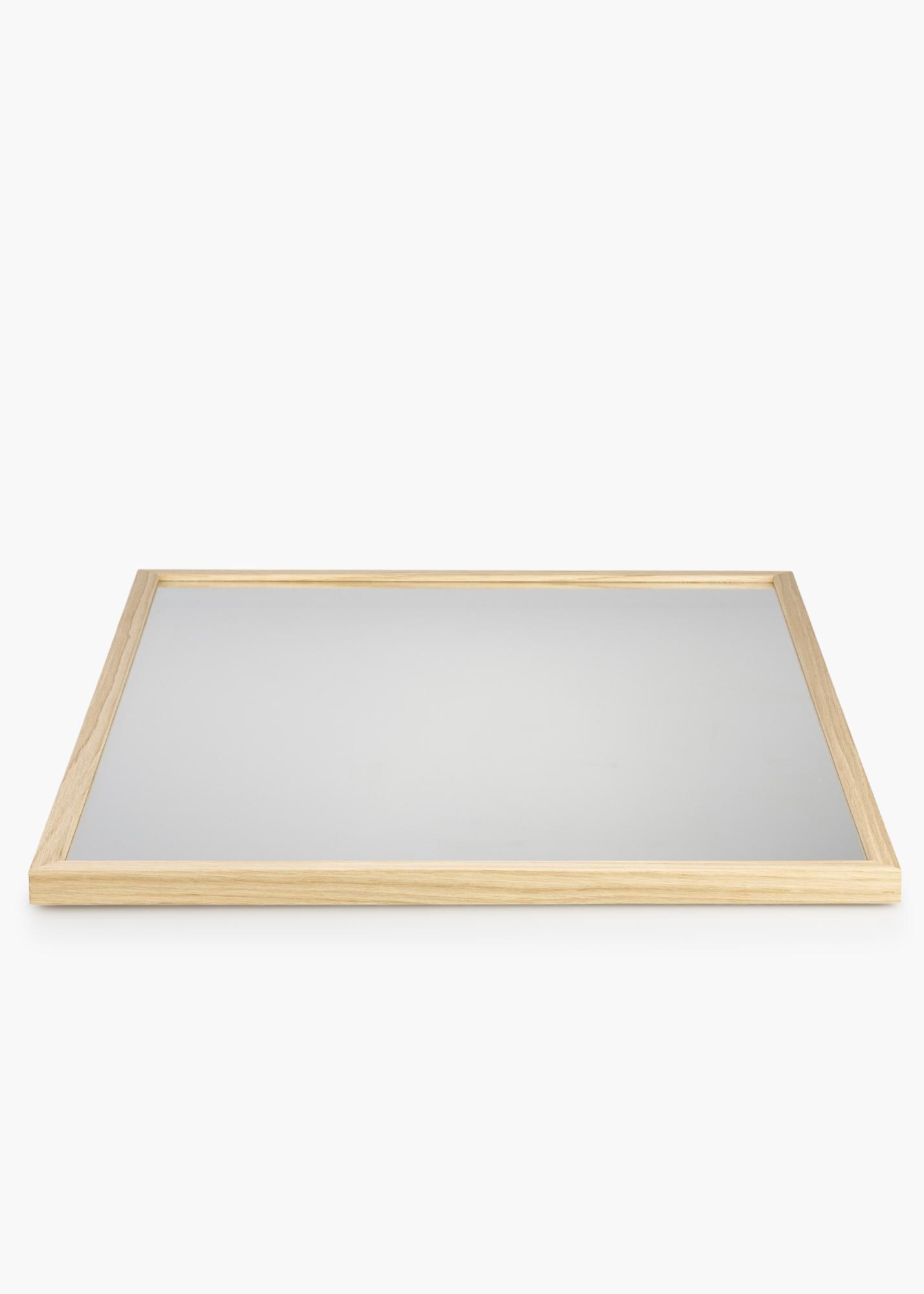 Laat deze spiegel met een hoogwaardige houten lijst in eikenhout je huis sieren! De lijst bestaat uit een grenen frame met daarop echt eikenfineer. Het oppervlak is onbehandeld, wat betekent dat je ervoor kunt kiezen om de lijst te schilderen of te beitsen zoals je wilt, of je kunt de rustieke en stijlvolle structuur laten zoals het is. Door de variatiemogelijkheden past deze spiegel in elk huis en wordt het een tijdloze accessoire. Deze wandspiegel meet 50x70 cm en heeft ongekleurd spiegelglas. De lijst is 17 mm breed en 22,5 mm diep. De spiegel heeft muurbeugels voor bevestiging.