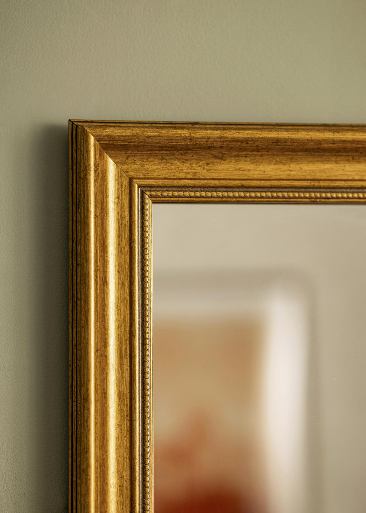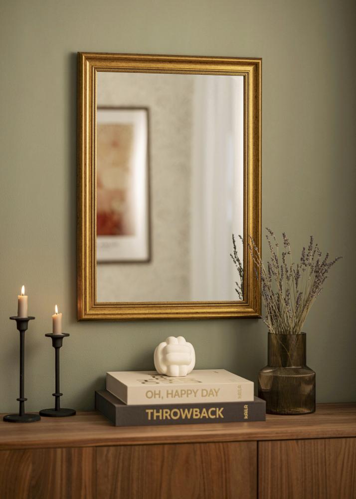 Rokoko is een spiegelserie van Estancia met een prachtig frame in elegante Rococo stijl. Het frame is goudkleurig, waardoor de spiegel een groot gevoel van luxe uitstraalt. Het decoratieve en luxe design maakt de spiegel tot een perfect interieurdetail in de gang, slaapkamer of woonkamer. De spiegel is er in verschillende maten, zodat je degene kunt kiezen die het beste past in jouw huis. Deze spiegel meet 50x70 cm.