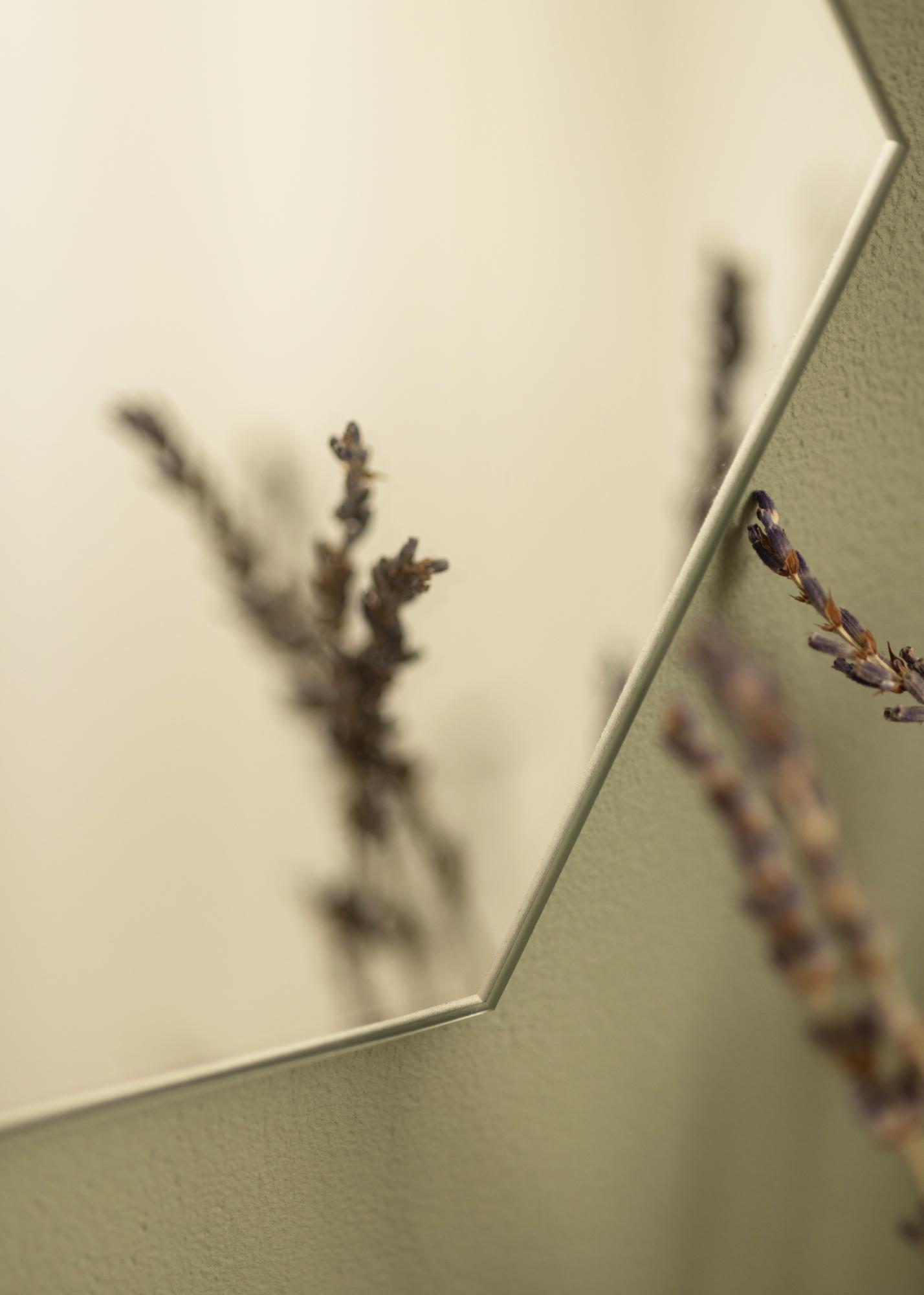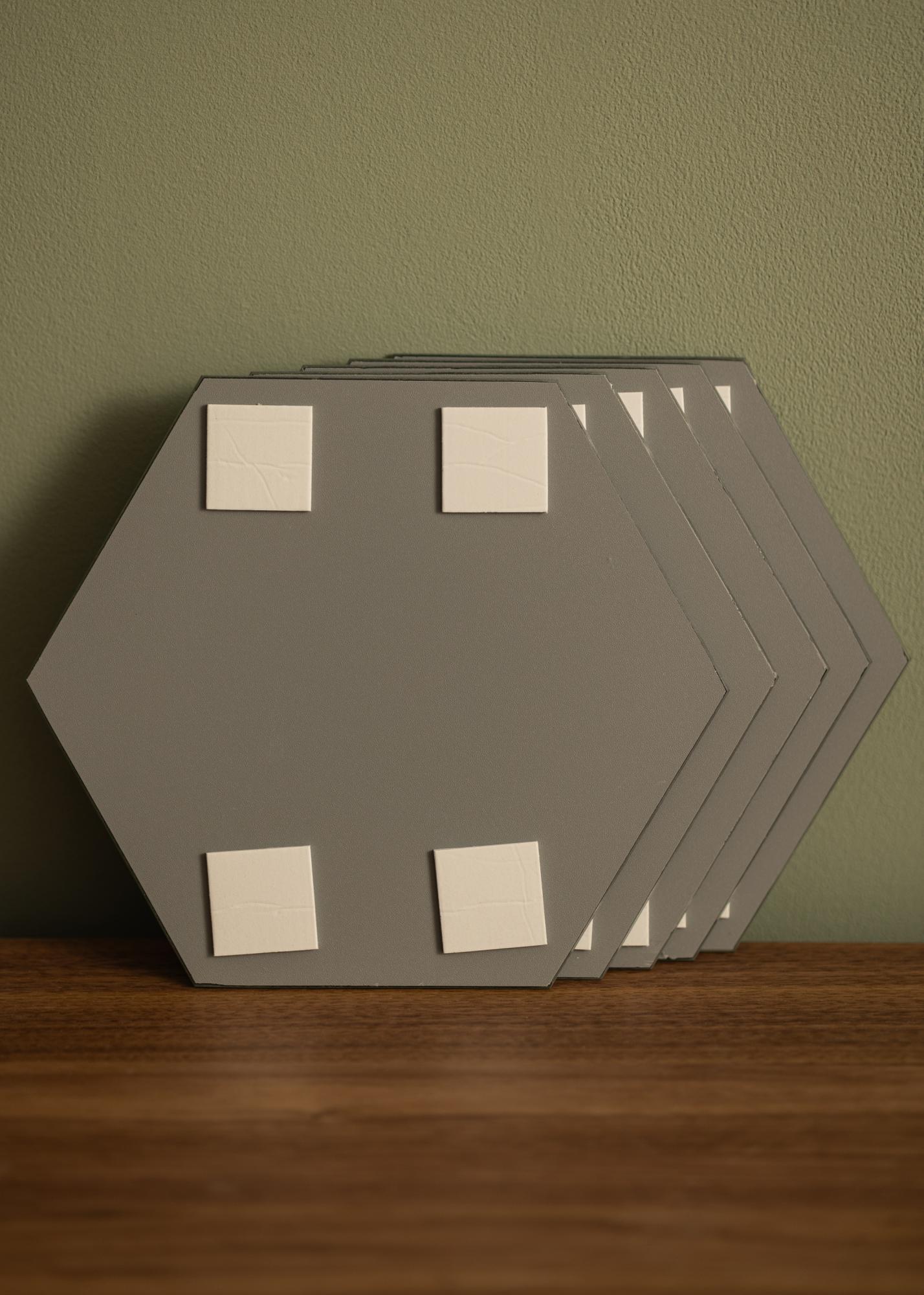 Deze supertrendy zeshoekspiegels worden verkocht als 5-pack en worden geleverd met dubbelzijde tape, waarmee je ze eenvoudig aan de muur kunt bevestigen.